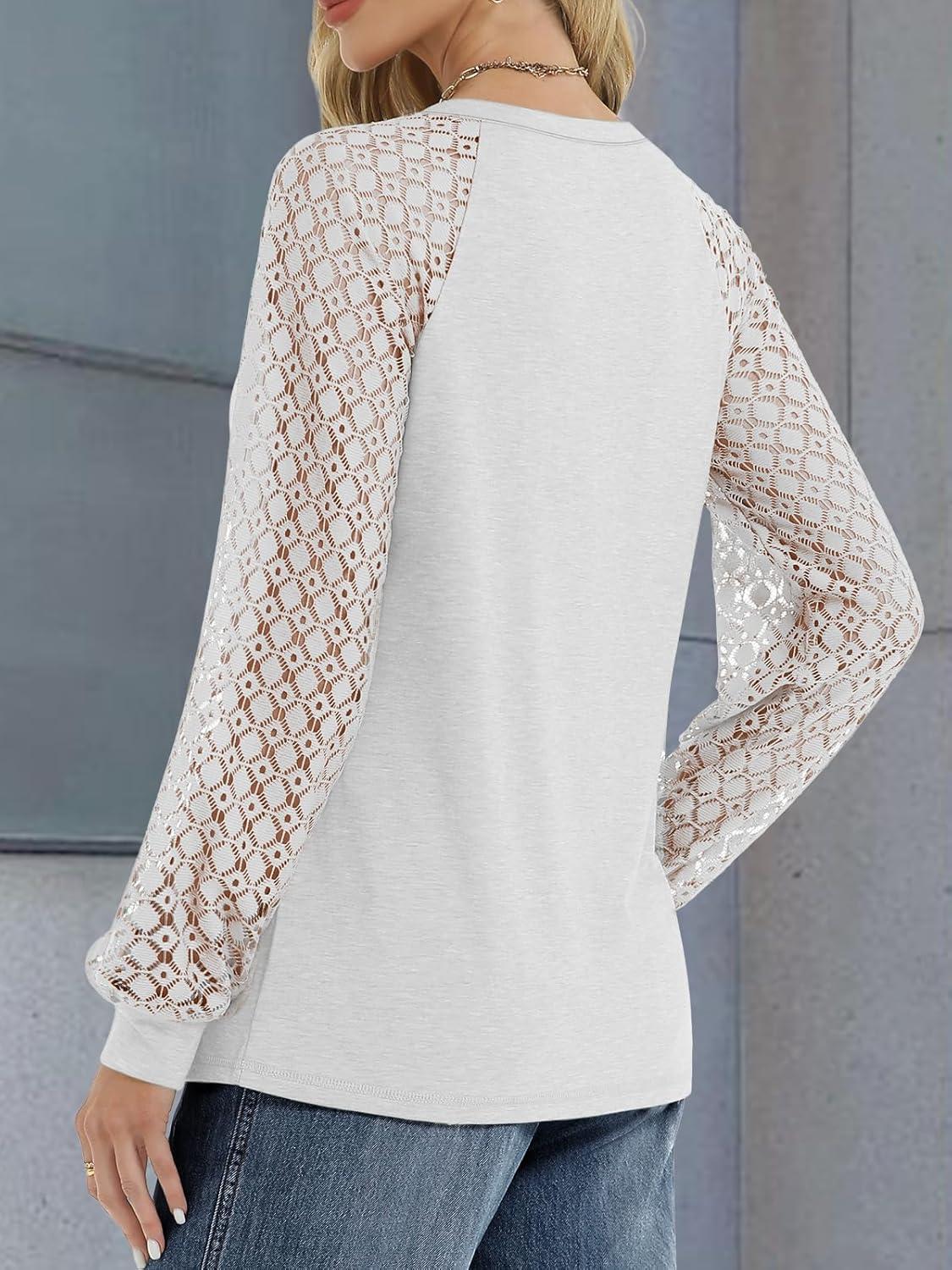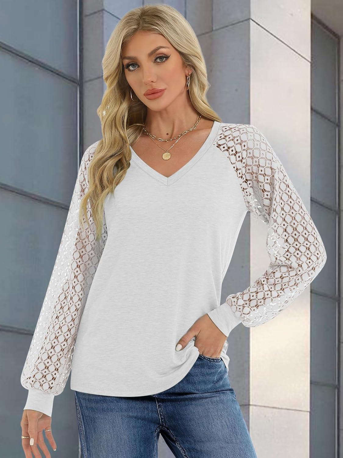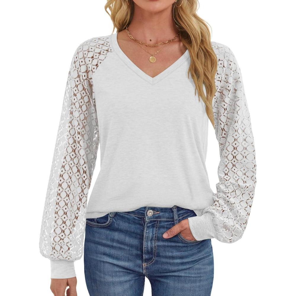 Get up to 50% off on ATHMILE Womens Long Sleeve Shirts V-Neck Lace Tops Business Casual Blouses Tee 2025 Trendy Fall Fashion Outfits Clothes(White) styles during our spring sale event.