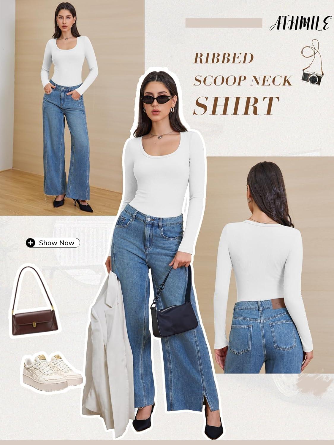 Get up to 60% off on ATHMILE Womens Long Sleeve Tops Fall Scoop Neck Ribbed Knit Shirts Slim Fitted Casual Basic Tee T Shirt for Women 2025(A-white) styles during our winter sale event.