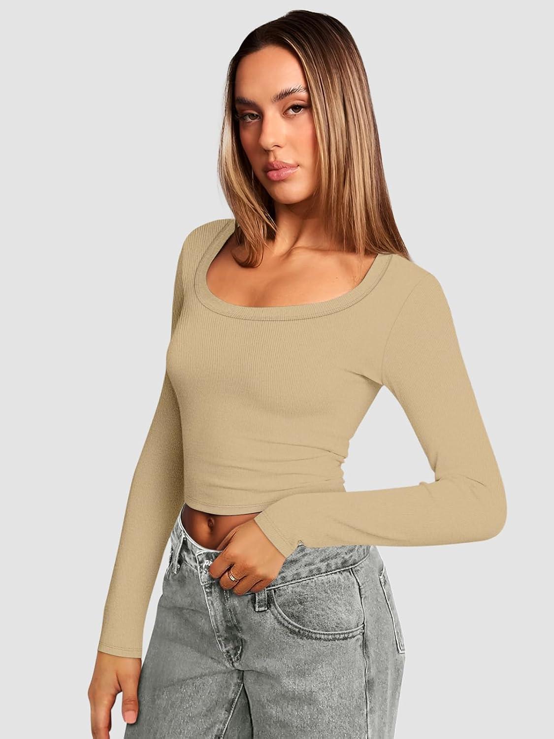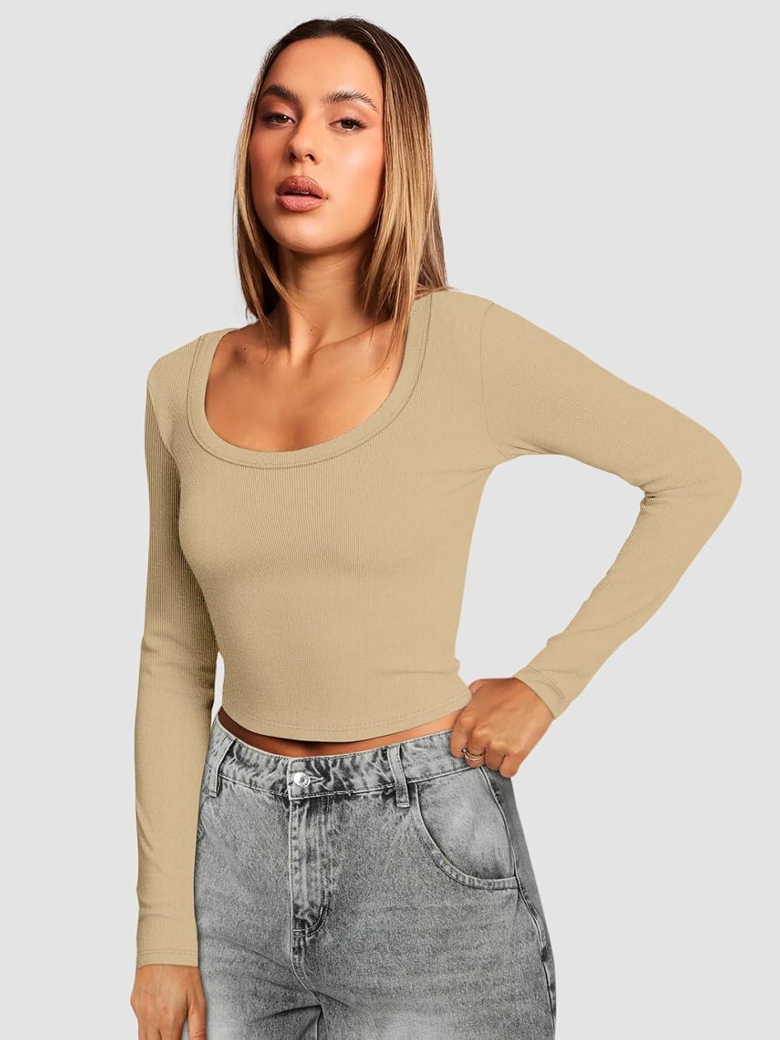 Save big on ATHMILE Womens Long Sleeve Tops Fall Scoop Neck Ribbed Knit Shirts Slim Fitted Casual Basic Tee T Shirt for Women 2025(B-light Beige) and accessories during our BOGO sale. Buy one, get one 50% off!