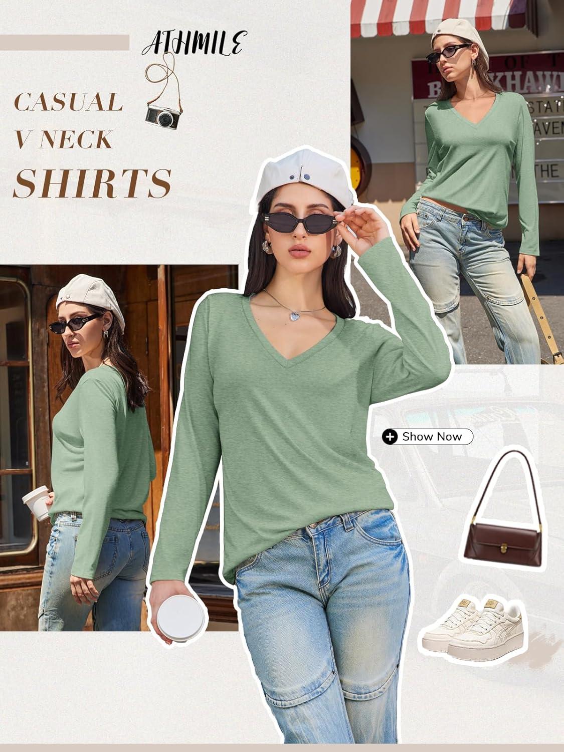 Be the first to review “ATHMILE Womens Long Sleeve V Neck Shirts Basic Tee Casual Top Fall Trendy Tunic Outfits Fitted T Shirts(Light Green)”