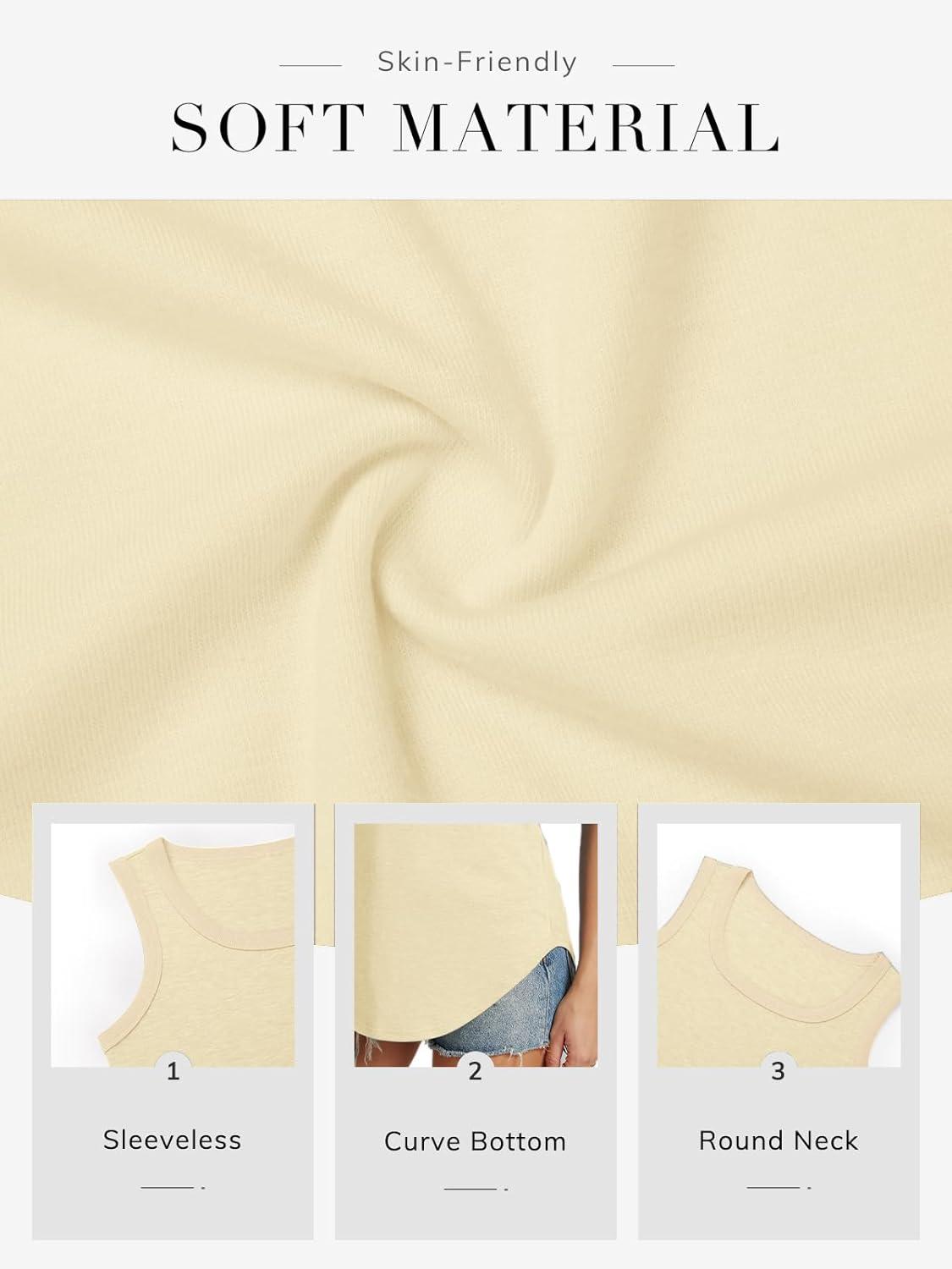 ATHMILE Womens Loose Fit Casual Flowy Tank Tops Round Neck Trendy Sleeveless Summer Beach Clothes Outfits(Apricot)