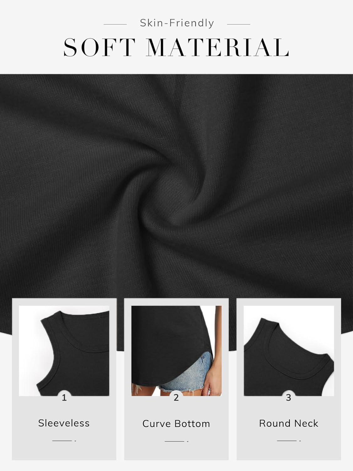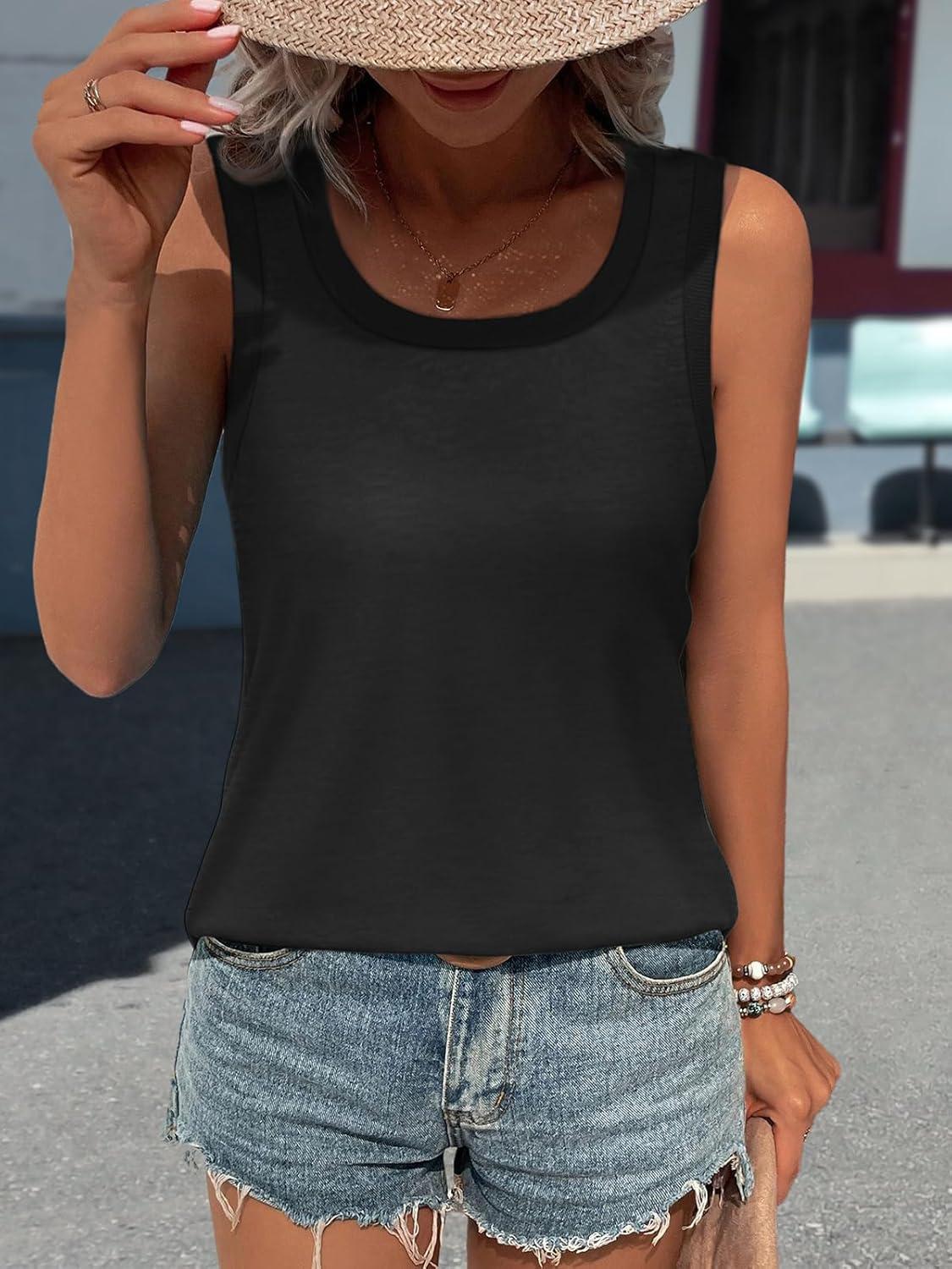 ATHMILE Womens Loose Fit Casual Flowy Tank Tops Round Neck Trendy Sleeveless Summer Beach Clothes Outfits(Black)