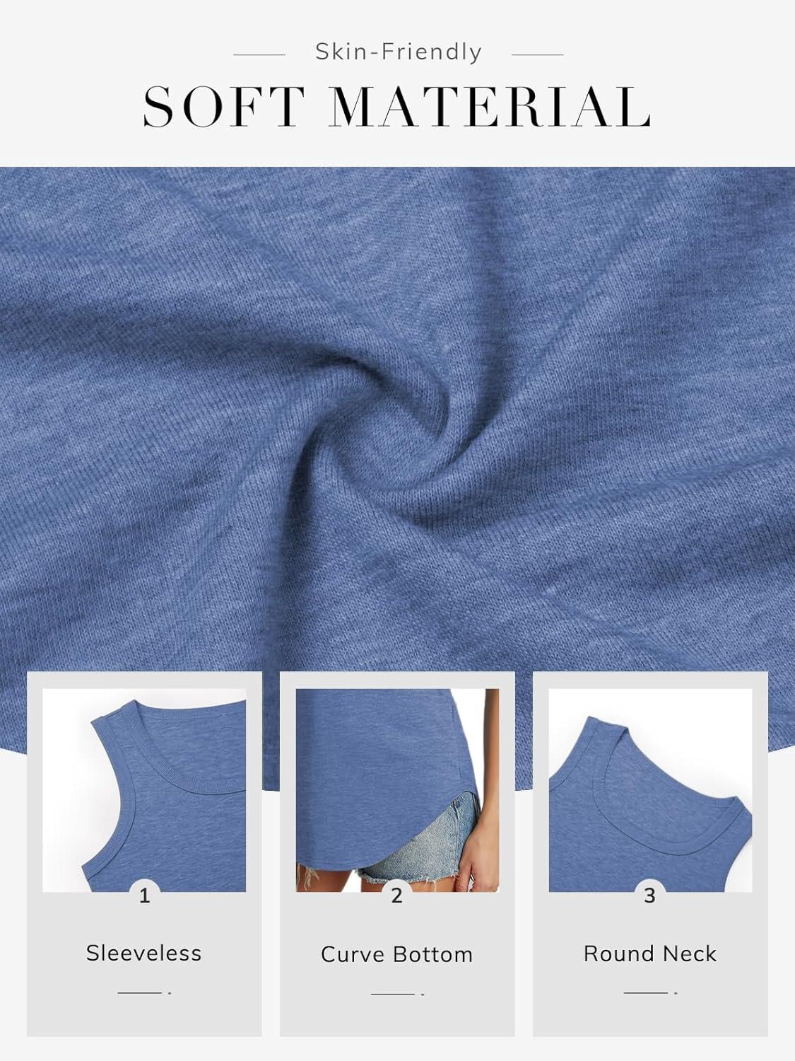 ATHMILE Womens Loose Fit Casual Flowy Tank Tops Round Neck Trendy Sleeveless Summer Beach Clothes Outfits(Blue)