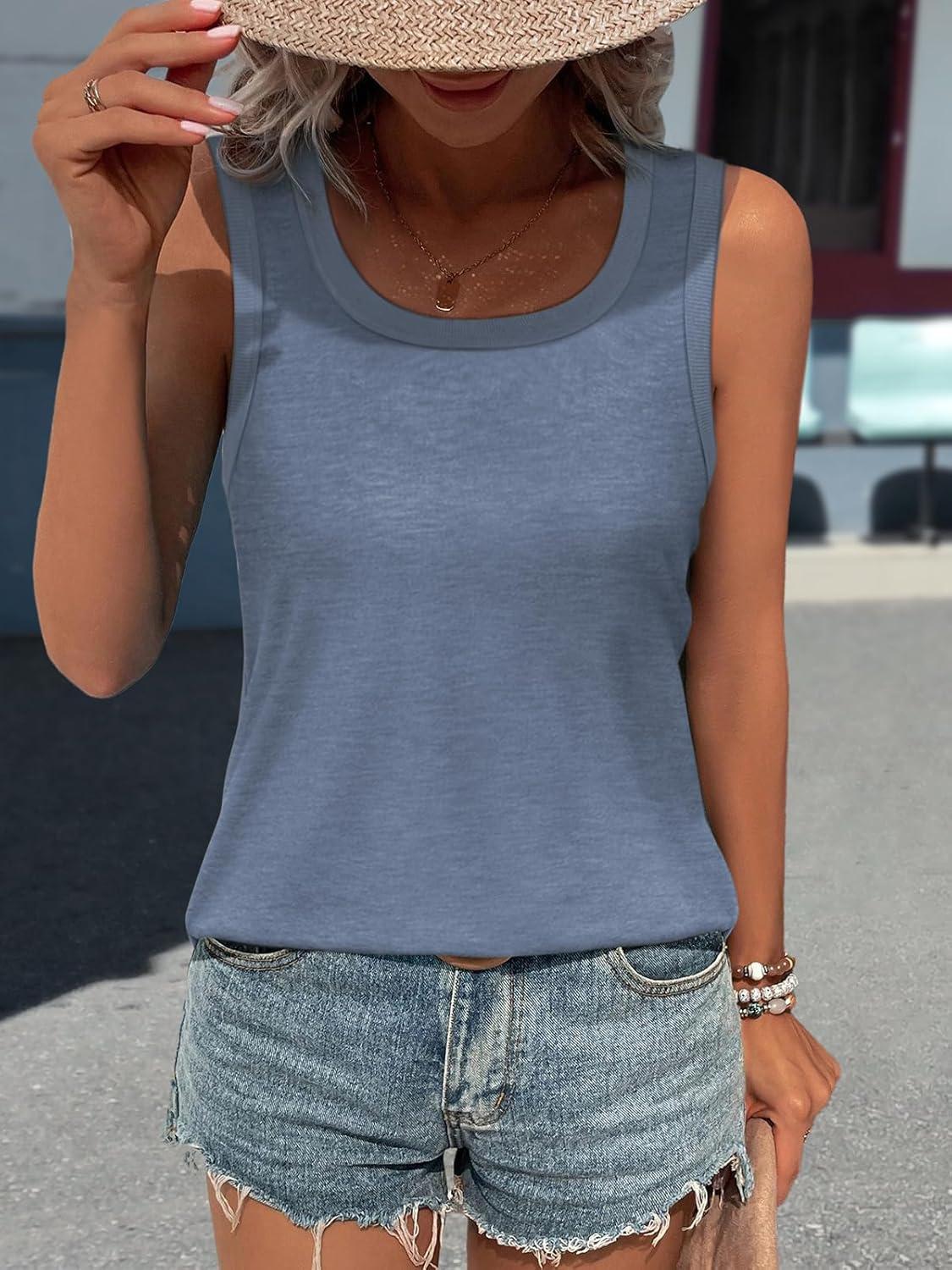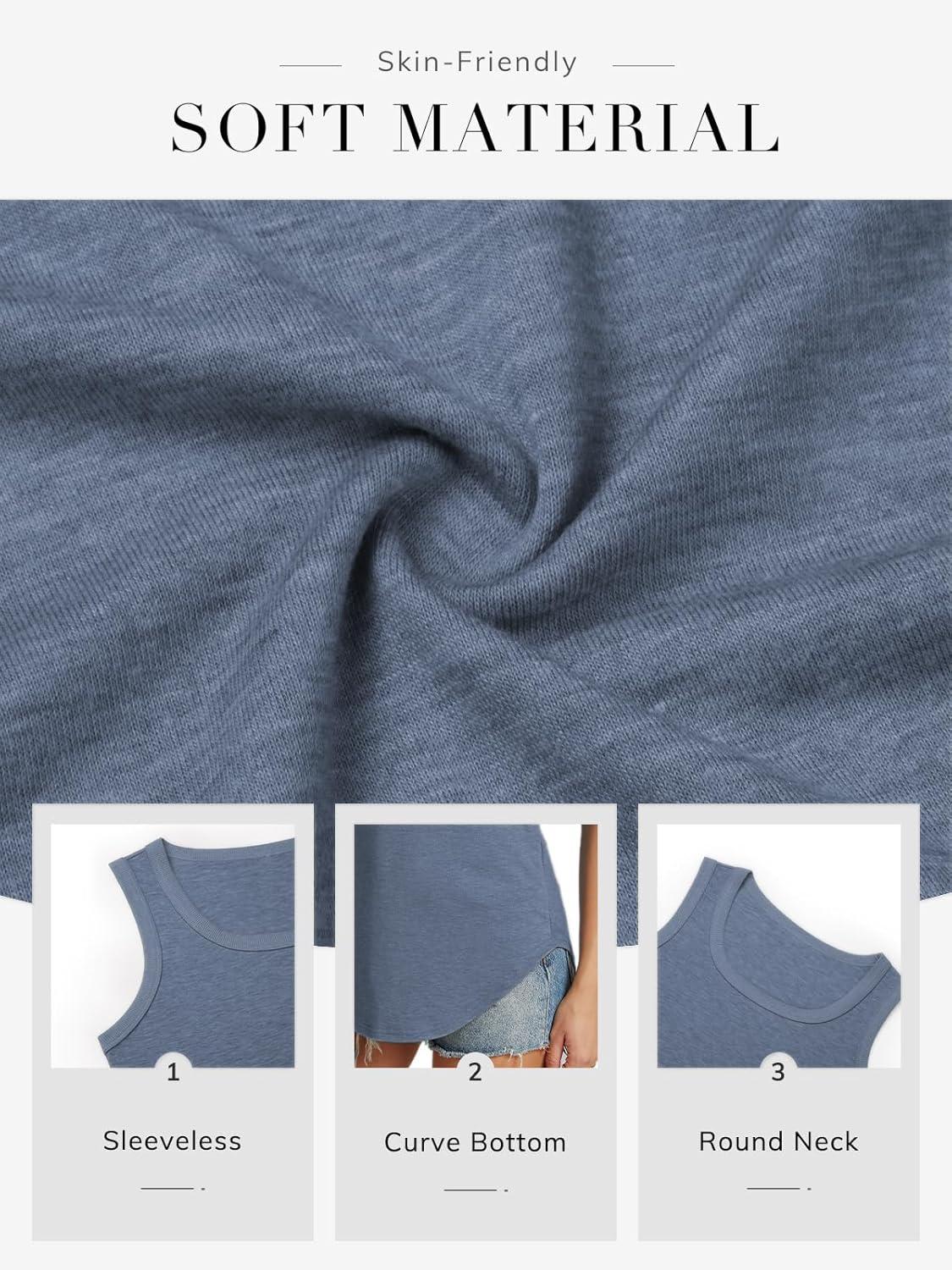 ATHMILE Womens Loose Fit Casual Flowy Tank Tops Round Neck Trendy Sleeveless Summer Beach Clothes Outfits(Grey Blue)