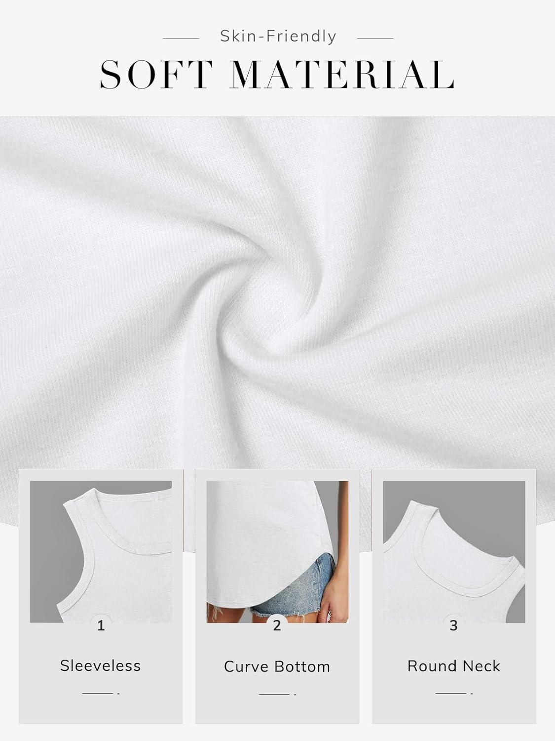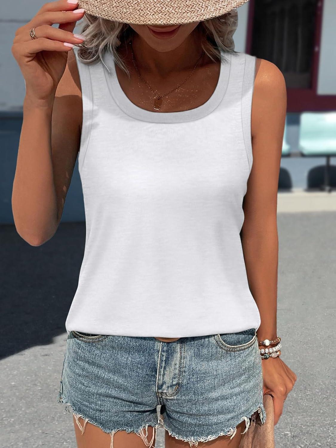 ATHMILE Womens Loose Fit Casual Flowy Tank Tops Round Neck Trendy Sleeveless Summer Beach Clothes Outfits(White)