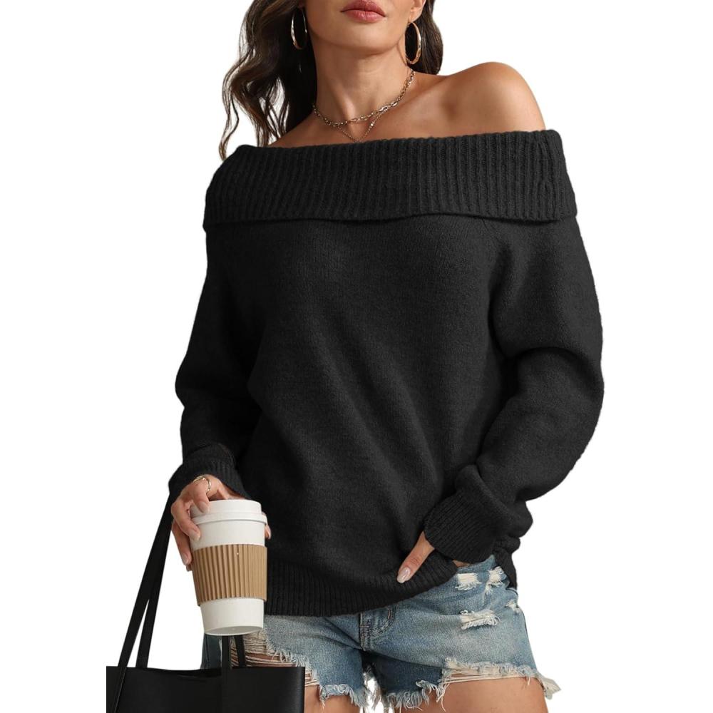 ATHMILE Womens Off The Shoulder Sweaters Oversized Batwing Sleeve Loose Pullover Fall Outfits Winter Fashion Tops 2025(Black)