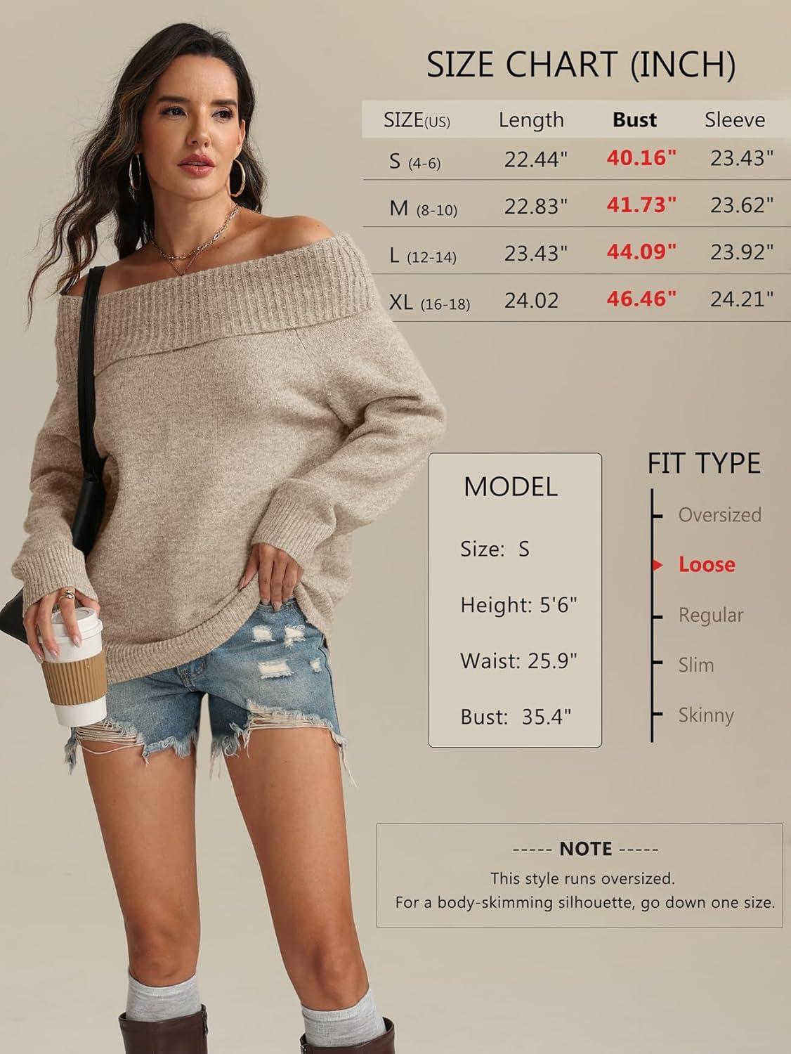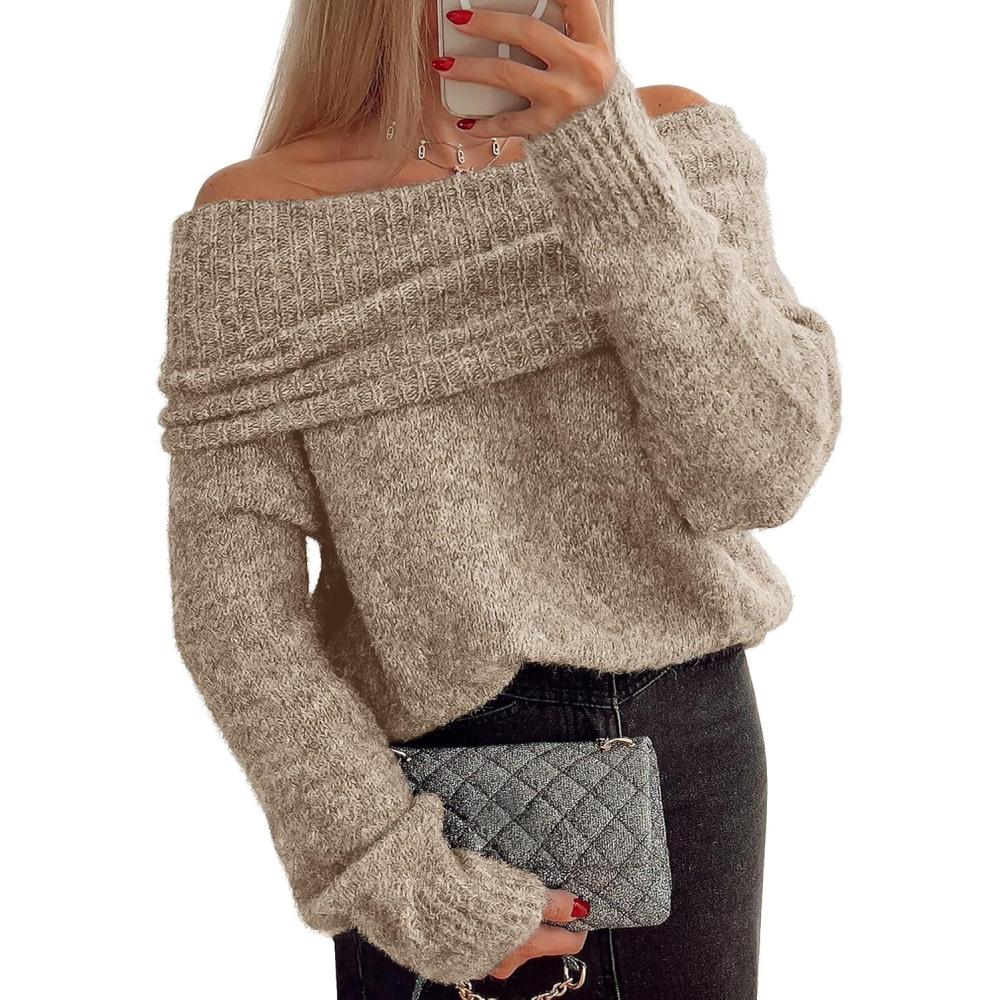 ATHMILE Womens Off The Shoulder Sweaters Oversized Batwing Sleeve Loose Pullover Fall Outfits Winter Fashion Tops 2025(Khaki)