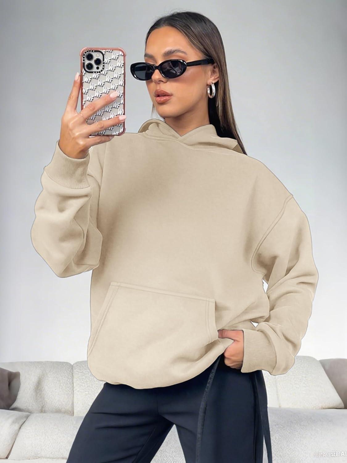 ATHMILE Womens Oversized Hoodies Fleece Sweatshirts Long Sleeve Sweaters Pullover Fall Clothes with Pocket(Beige)