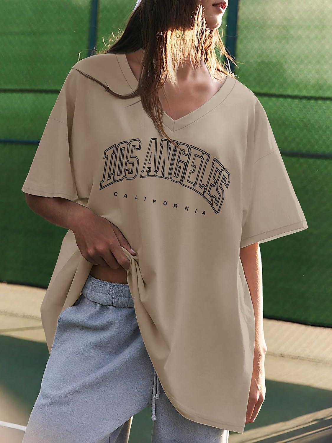 ATHMILE Womens Oversized Shirts V Neck Plus Size Spring Workout Summer Tops Beach Vacation 2026 Gym Clothes Basic Tee(Khaki-1)