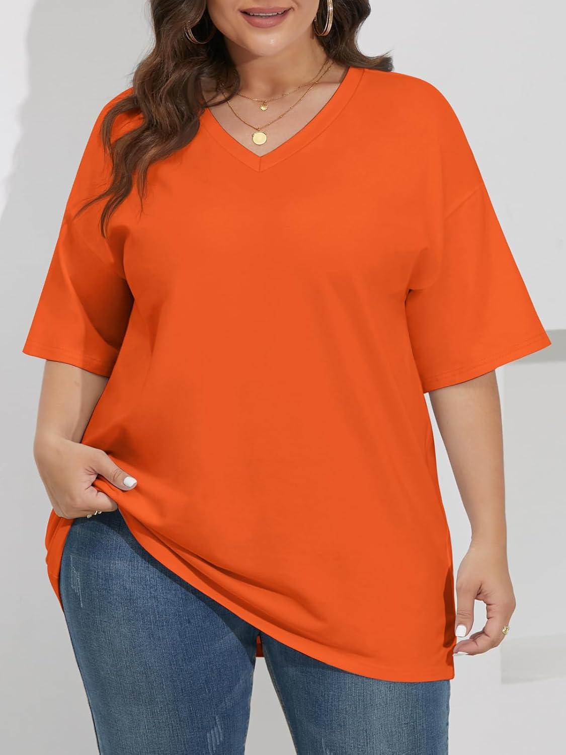 ATHMILE Womens Oversized Shirts V Neck Plus Size Spring Workout Summer Tops Beach Vacation 2026 Gym Clothes Basic Tee(Orange)
