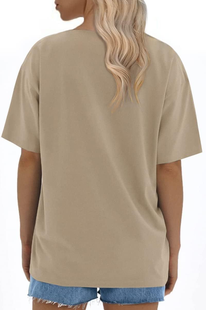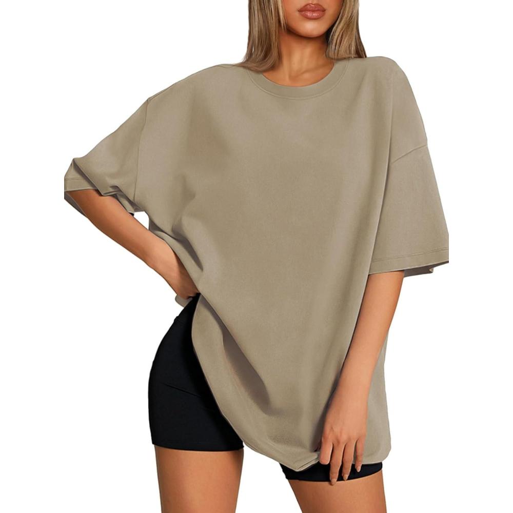 ATHMILE Womens Oversized T Shirts Loose Fit Crewneck Short Sleeve Tops Summer Casual Blouse 2025 Y2K Basic Tee Beach(Khaki)
