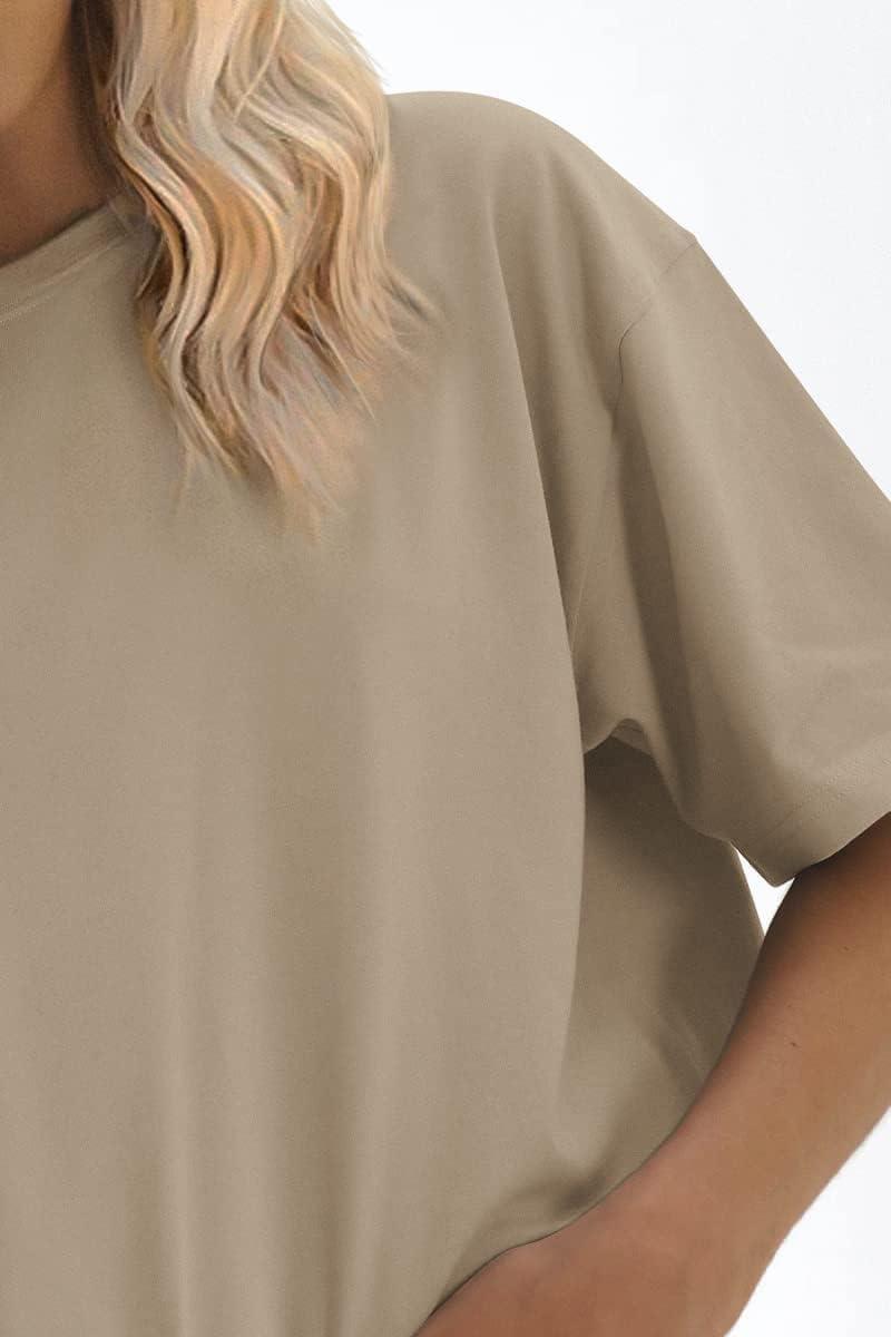 ATHMILE Womens Oversized T Shirts Loose Fit Crewneck Short Sleeve Tops Summer Casual Blouse 2025 Y2K Basic Tee Beach(Lightbrown)