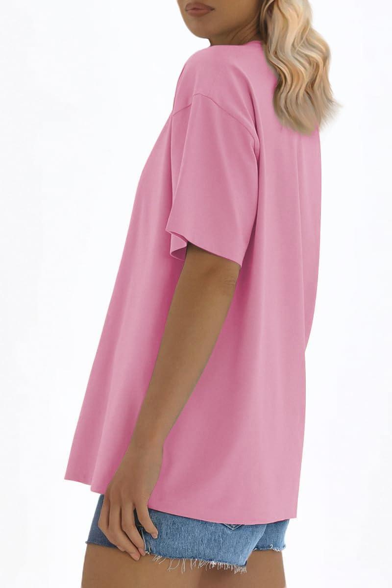 ATHMILE Womens Oversized T Shirts Loose Fit Crewneck Short Sleeve Tops Summer Casual Blouse 2025 Y2K Basic Tee Beach(Pink)
