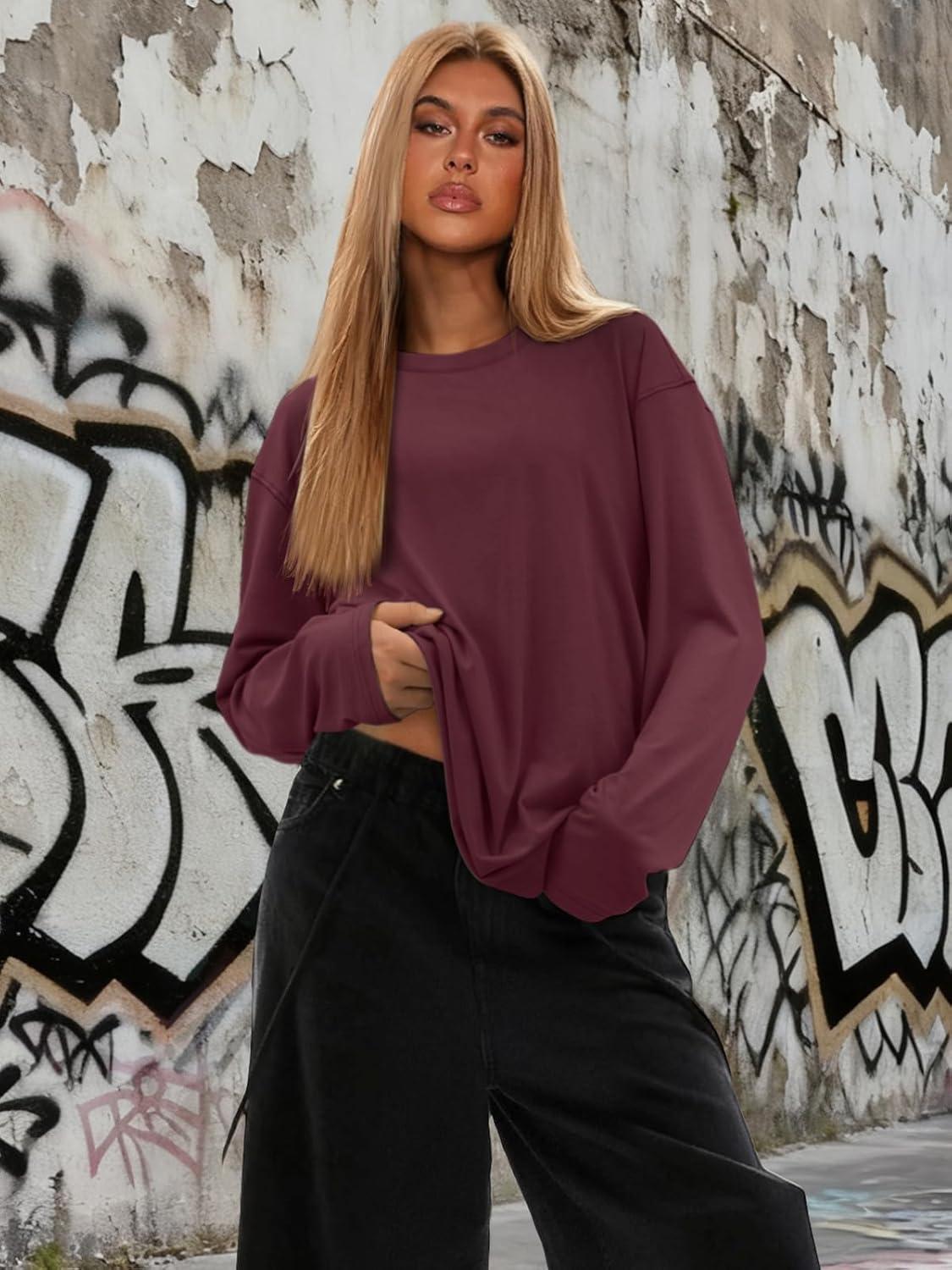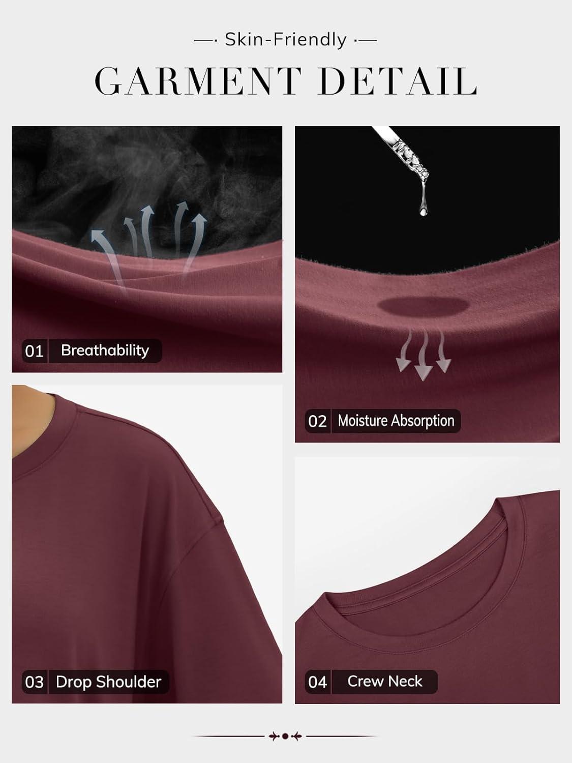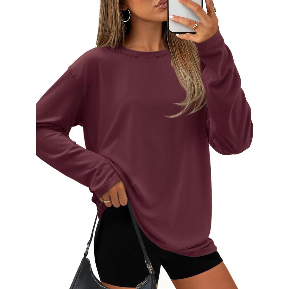 ATHMILE Womens Oversized T Shirts Loose Fit Crewneck Short Sleeve Tops Summer Casual Blouse Y2K 2025 Basic Tee Beach(Z-burgundy)