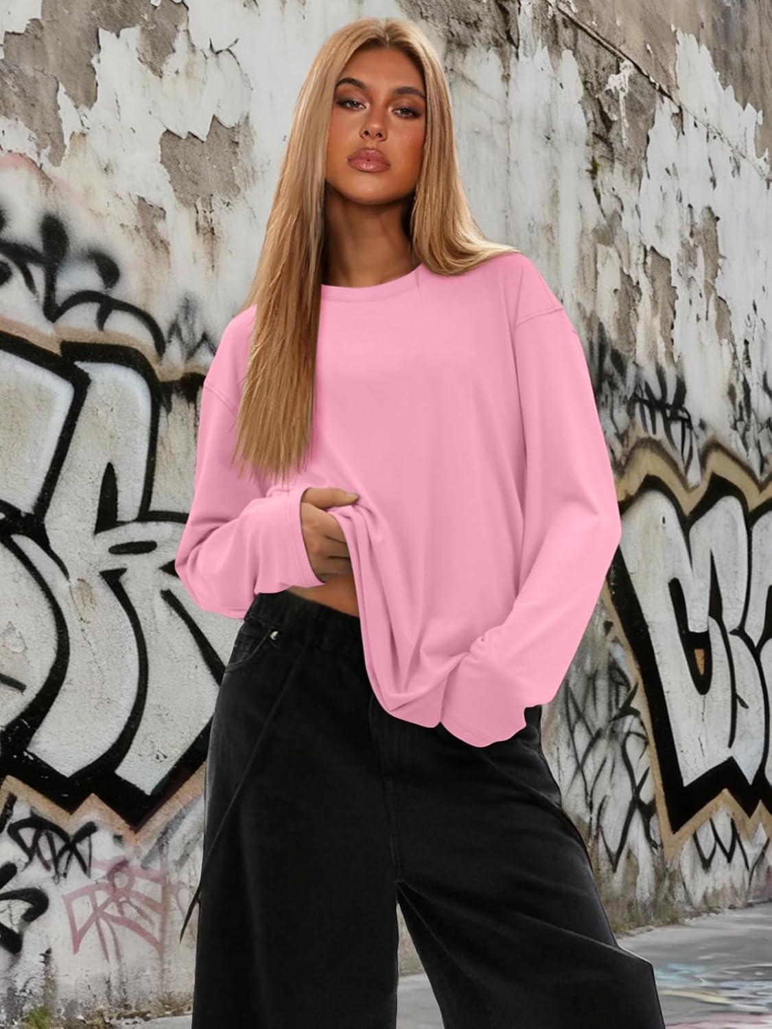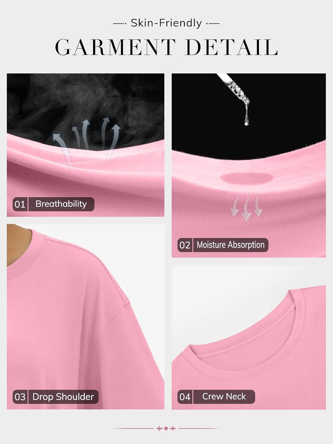 ATHMILE Womens Oversized T Shirts Loose Fit Crewneck Short Sleeve Tops Summer Casual Blouse Y2K 2025 Basic Tee Beach(Z-pink)