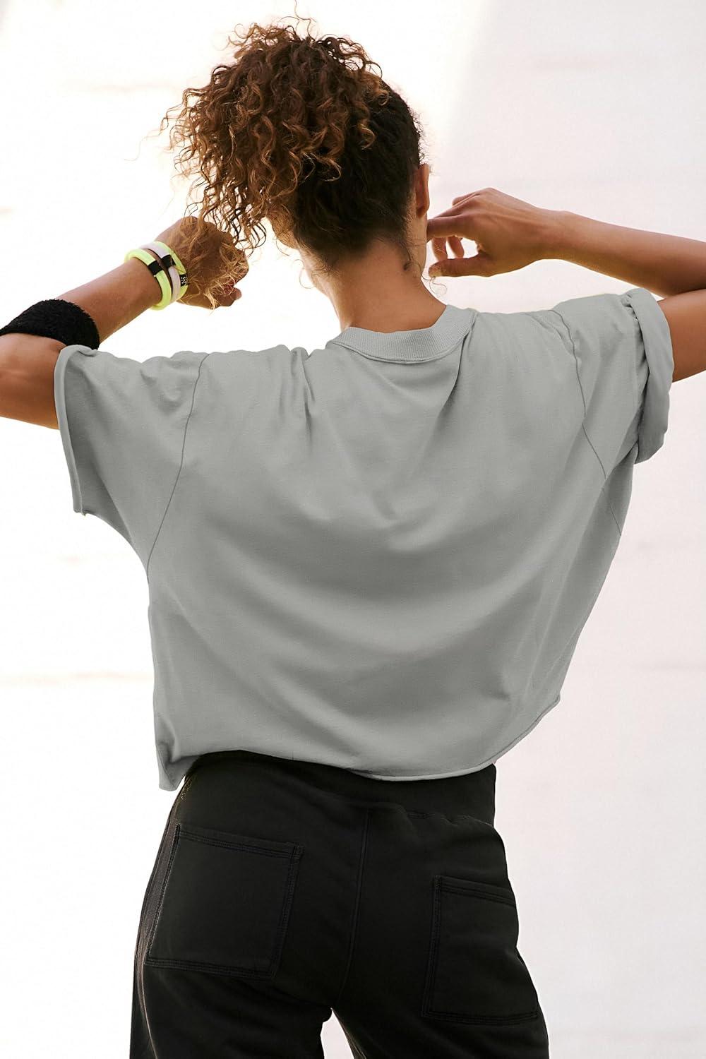 Get the ATHMILE Womens Oversized T-Shirts Short Sleeve Workout Crop Tops Casual Drop Shoulder Boxy Roll Hem Basic Loose Tees(Lightgrey) you want at a discounted price during our markdown sale event.
