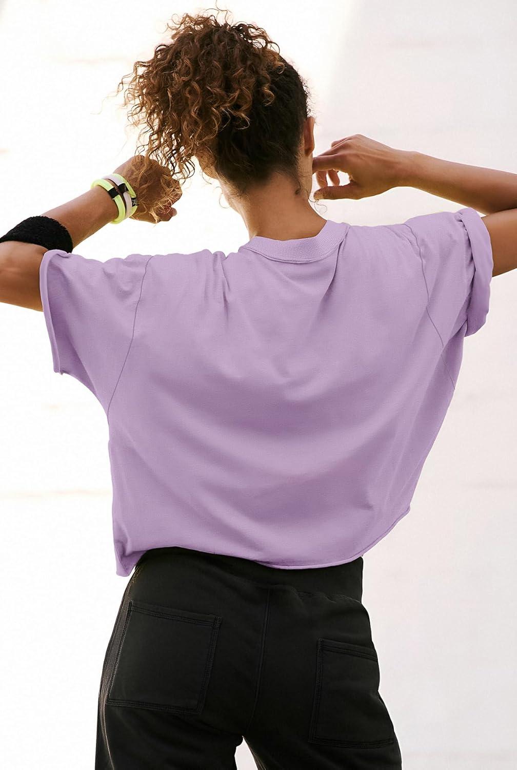 Get your hands on our newest ATHMILE Womens Oversized T-Shirts Short Sleeve Workout Crop Tops Casual Drop Shoulder Boxy Roll Hem Basic Loose Tees(Purple) and enjoy a limited-time discount offer.