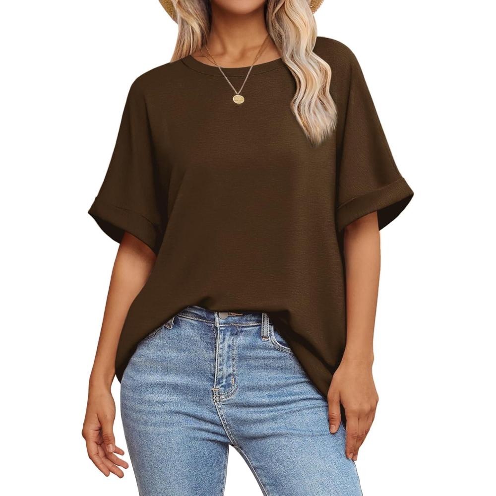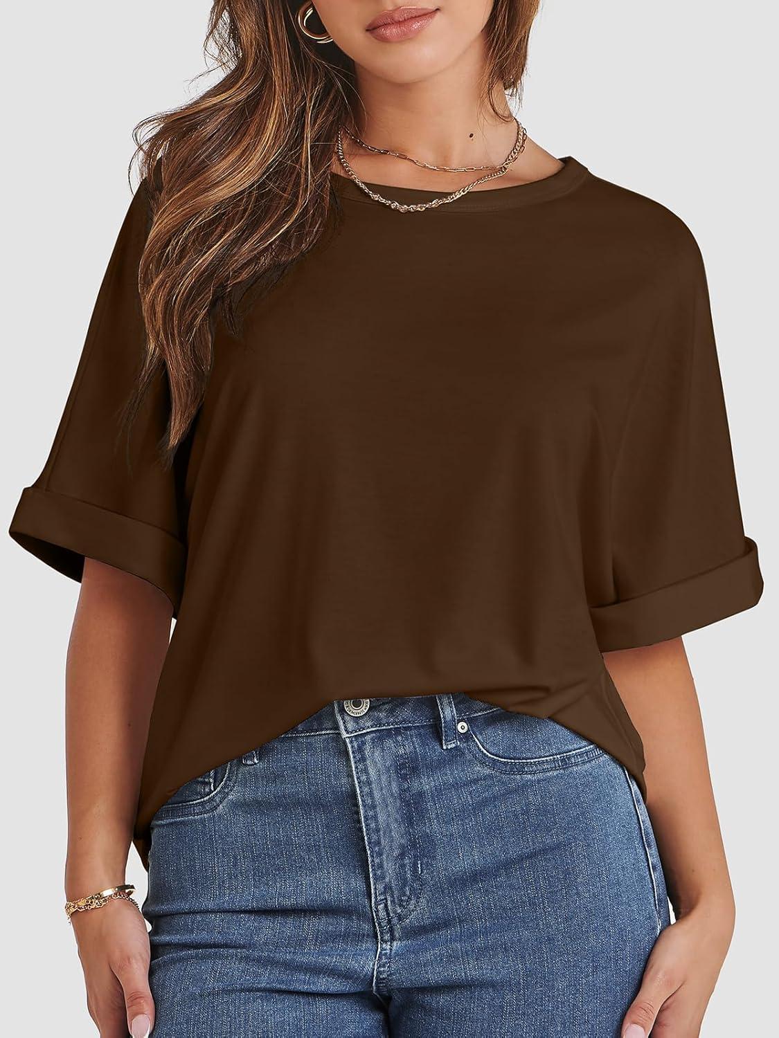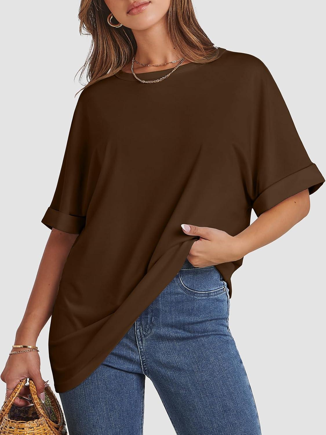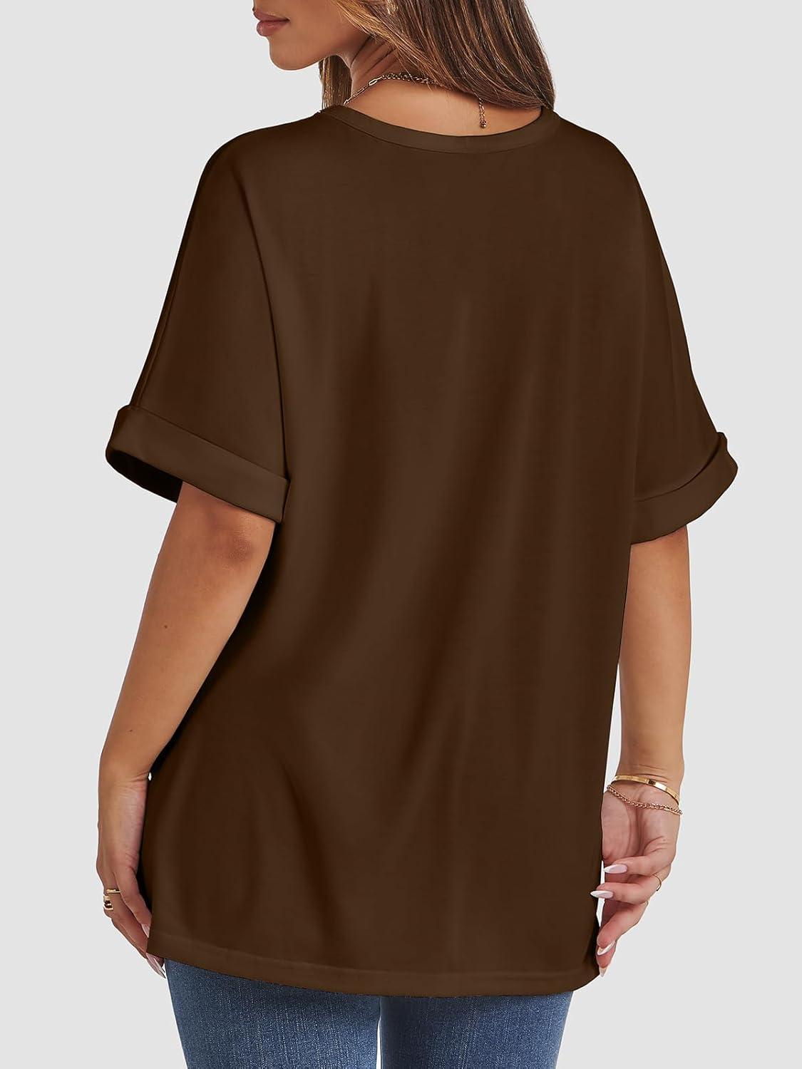ATHMILE Womens Oversized T Shirts Summer Tops Spring Casual Loose Fit Workout Short Sleeve 2025 Beach Vacation(Brown)