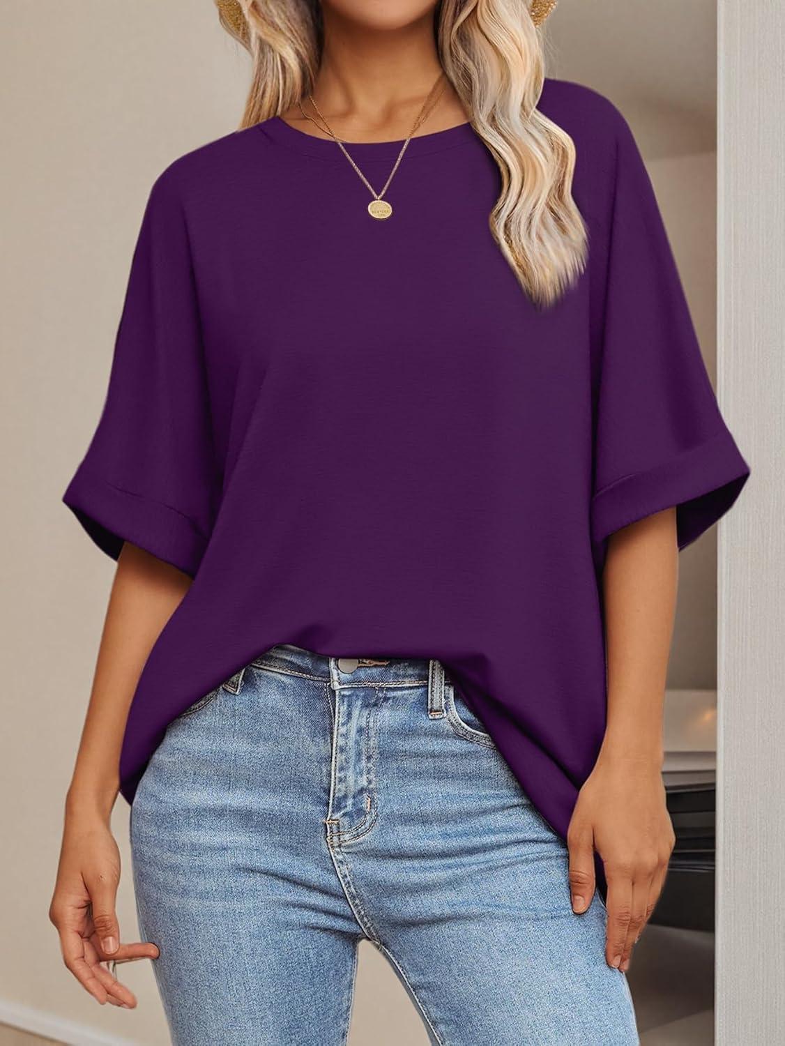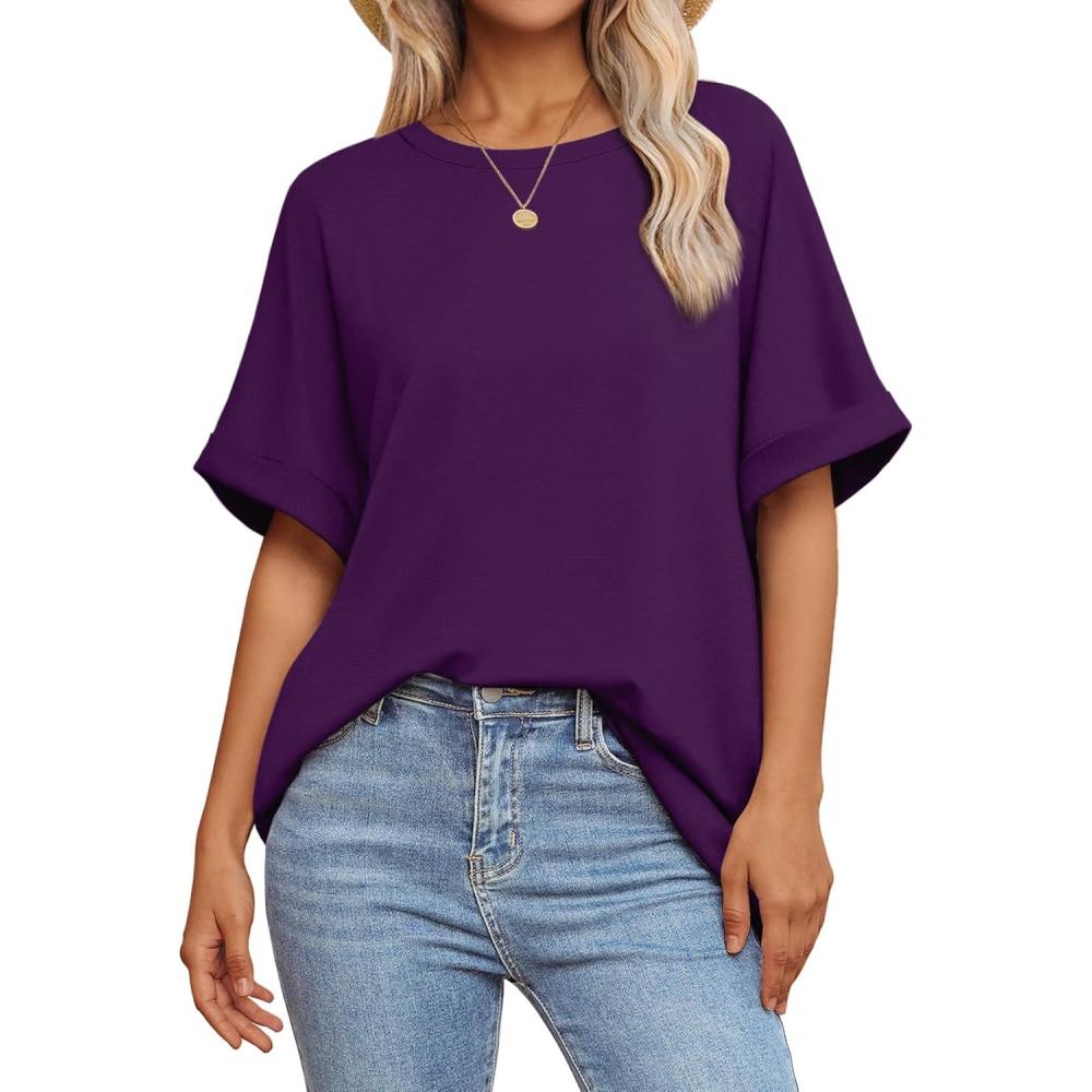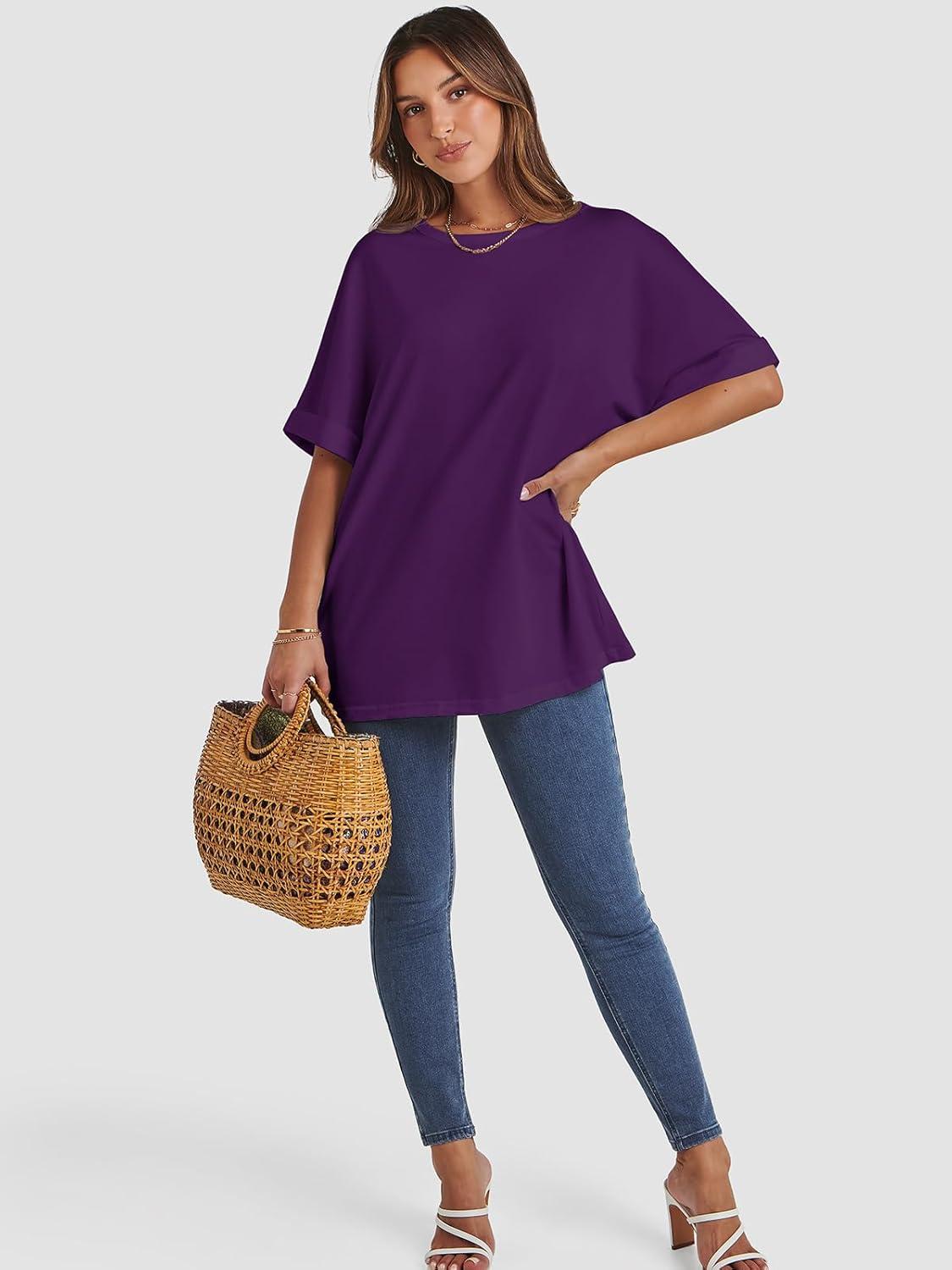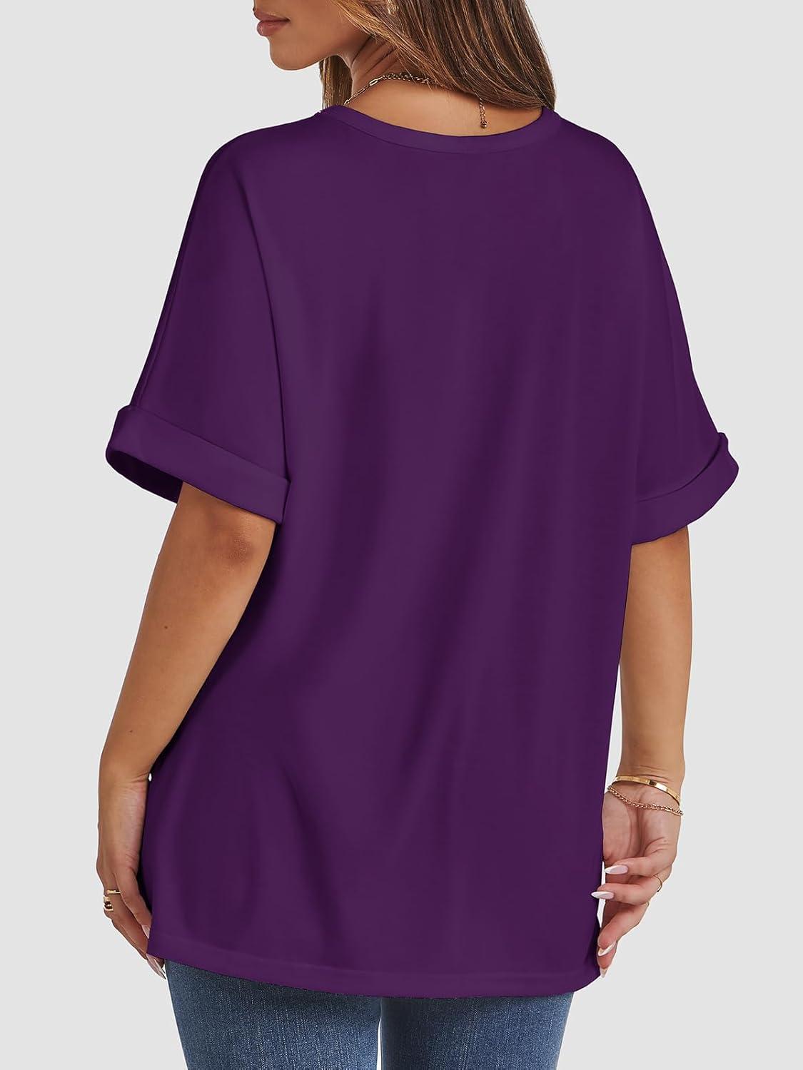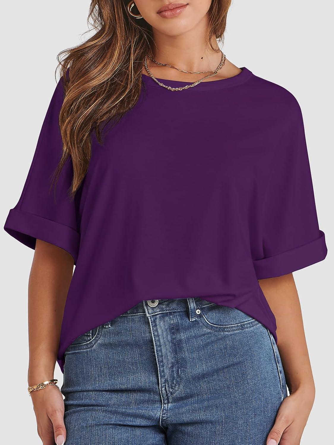 ATHMILE Womens Oversized T Shirts Summer Tops Spring Casual Loose Fit Workout Short Sleeve 2025 Beach Vacation(Dark Purple)