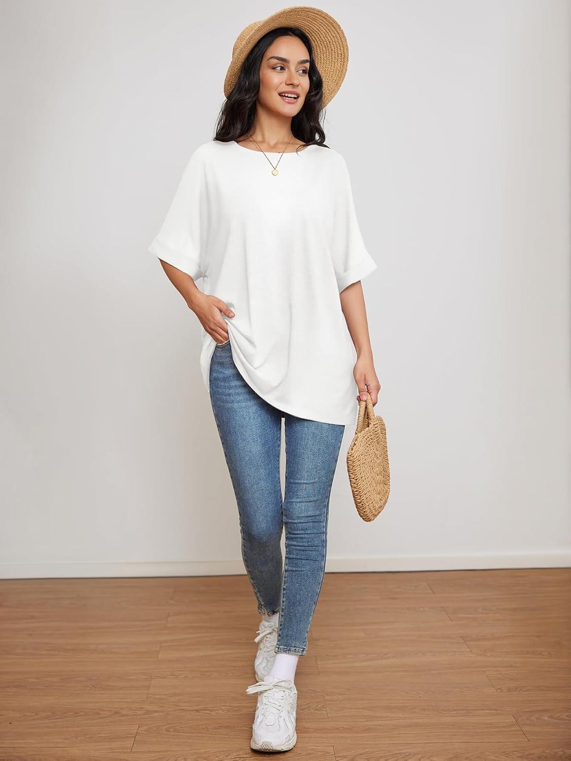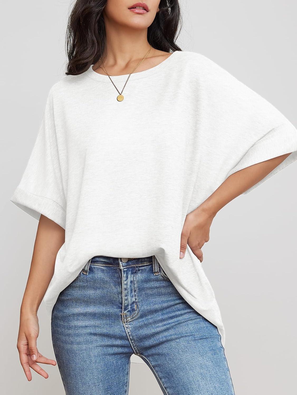 ATHMILE Womens Oversized T Shirts Summer Tops Spring Casual Loose Fit Workout Short Sleeve 2025 Beach Vacation(White)