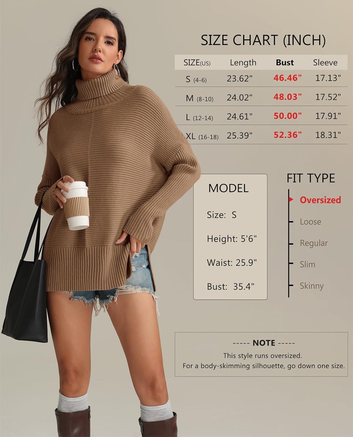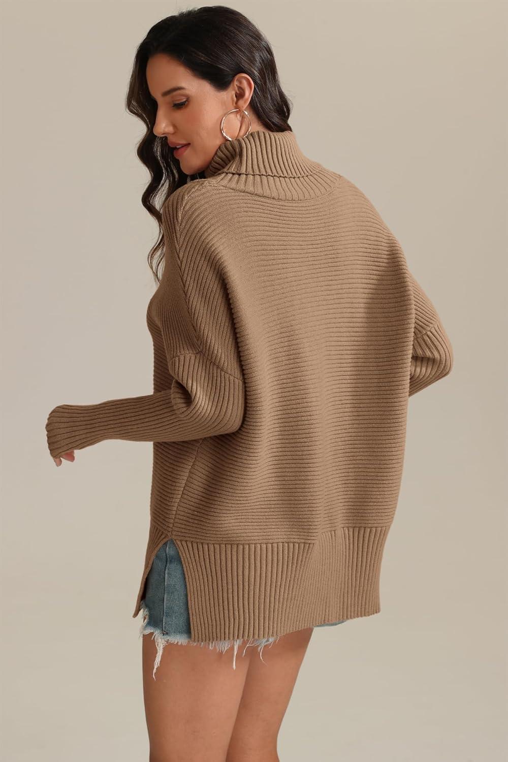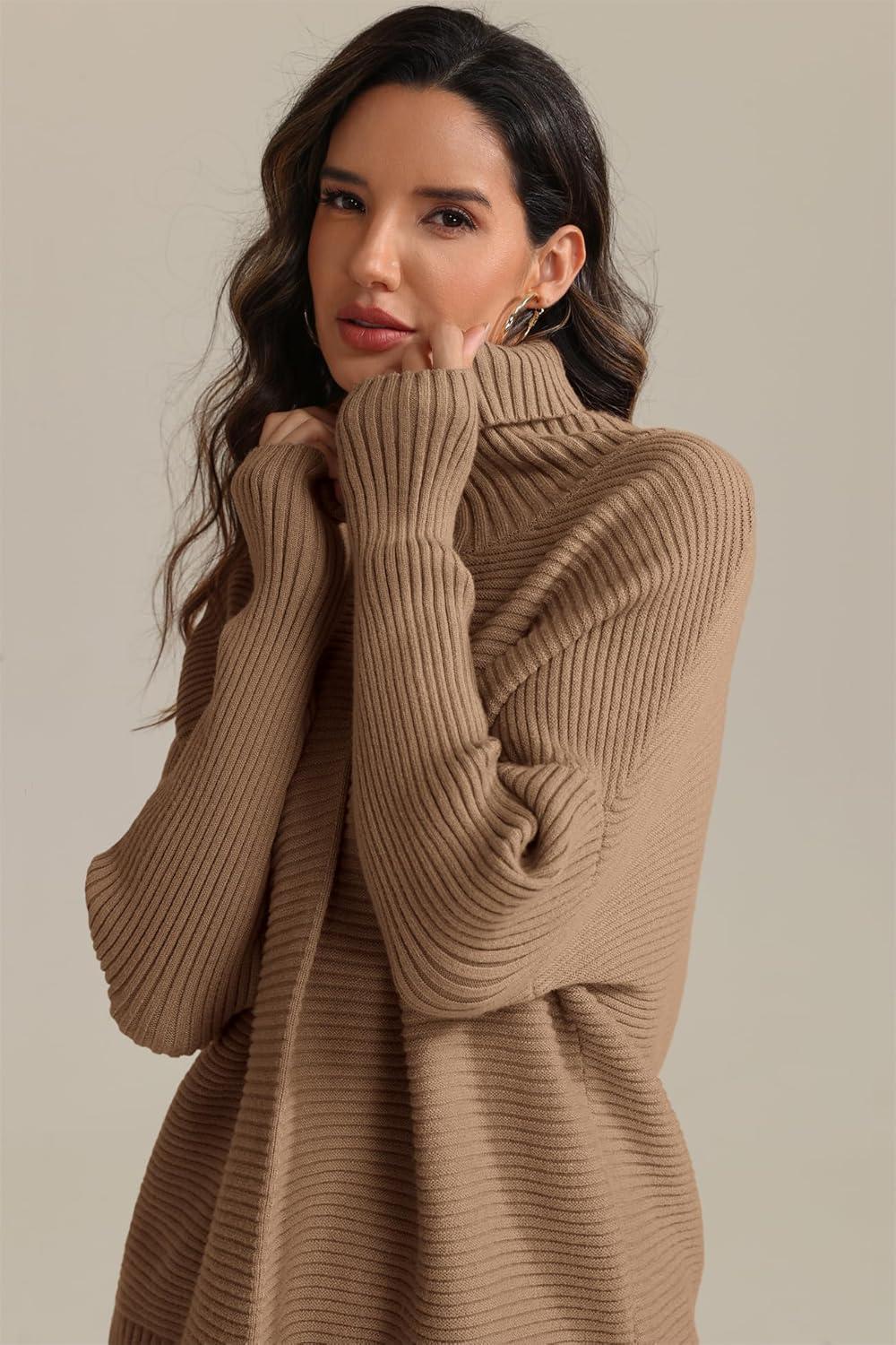 ATHMILE Women’s Oversized Turtleneck Sweaters Fall Fashion Outfits Batwing Sleeve Ribbed Tunic Winter Clothes 2025(Nutmeg)