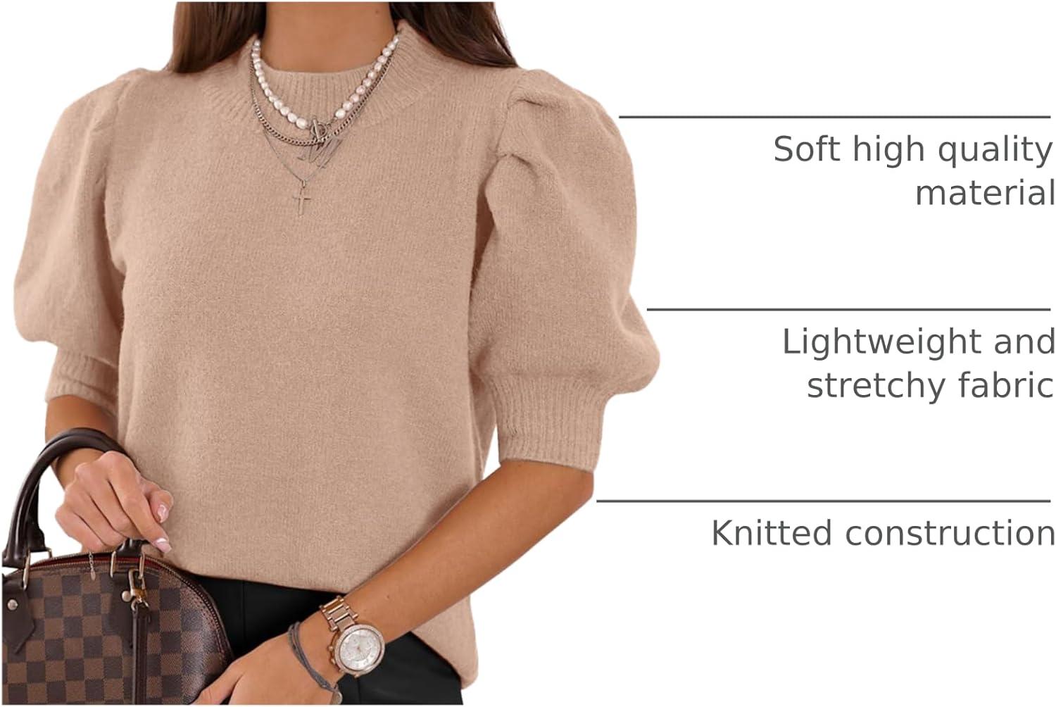 ATHMILE Women's Puff Short Sleeve Sweater Tops 2025 Spring Summer Fall Trendy Casual T Shirts Blouses(A-beige)