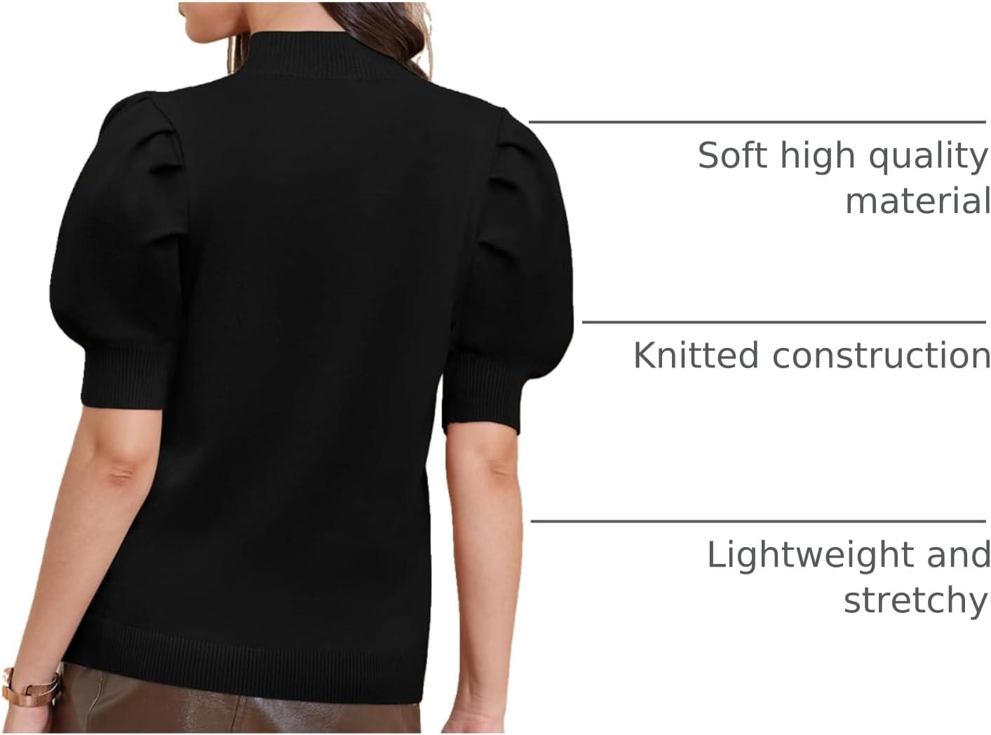 ATHMILE Women's Puff Short Sleeve Sweater Tops 2025 Spring Summer Fall Trendy Casual T Shirts Blouses(A-black)