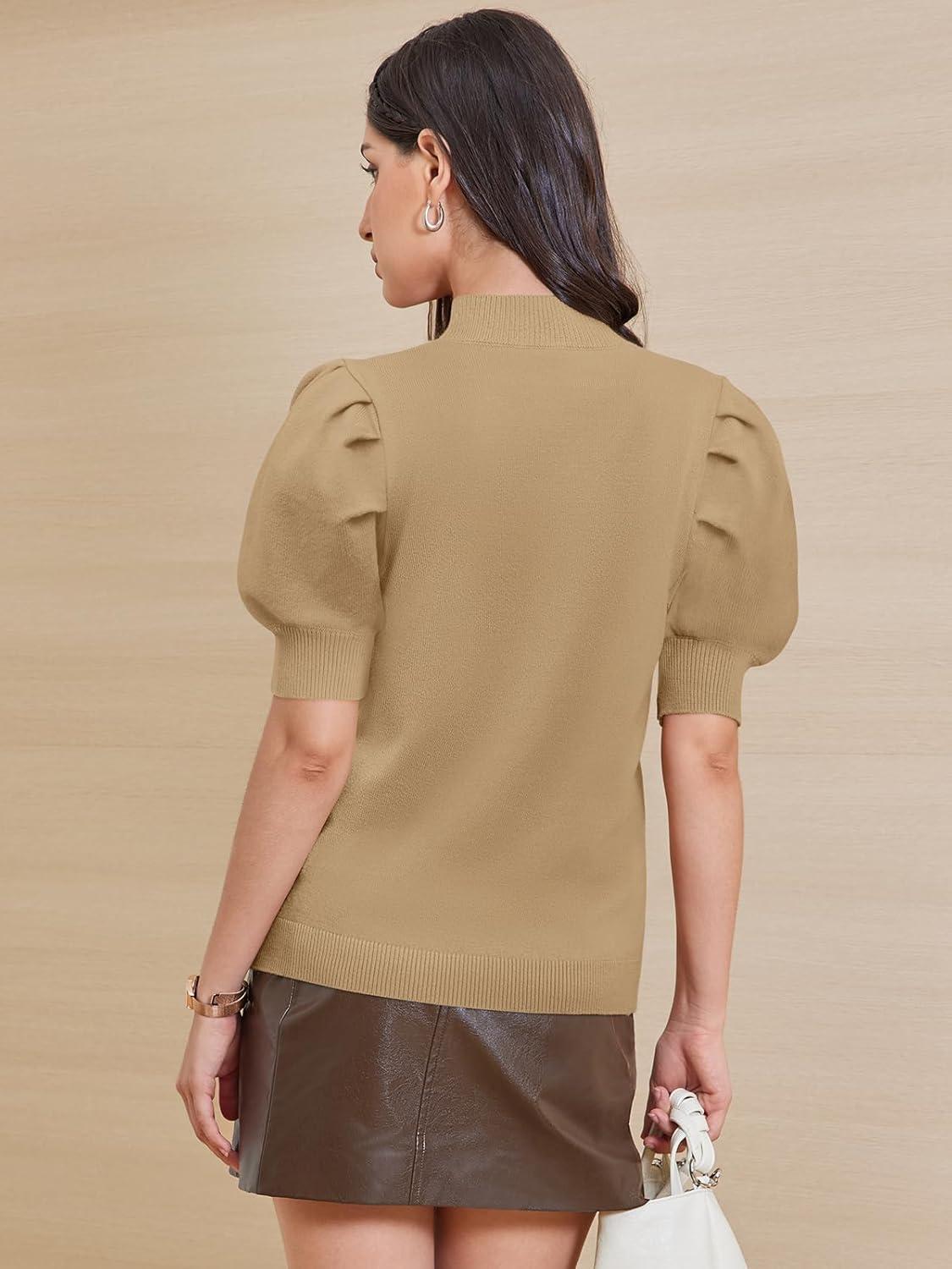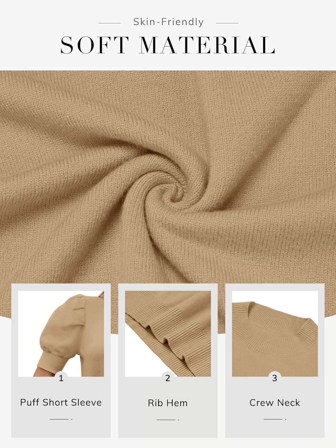 Don’t miss out on our limited-time offer: buy ATHMILE Women’s Puff Short Sleeve Sweater Tops 2025 Spring Summer Fall Trendy Casual T Shirts Blouses(A-khaki), get {accessory} 50% off!