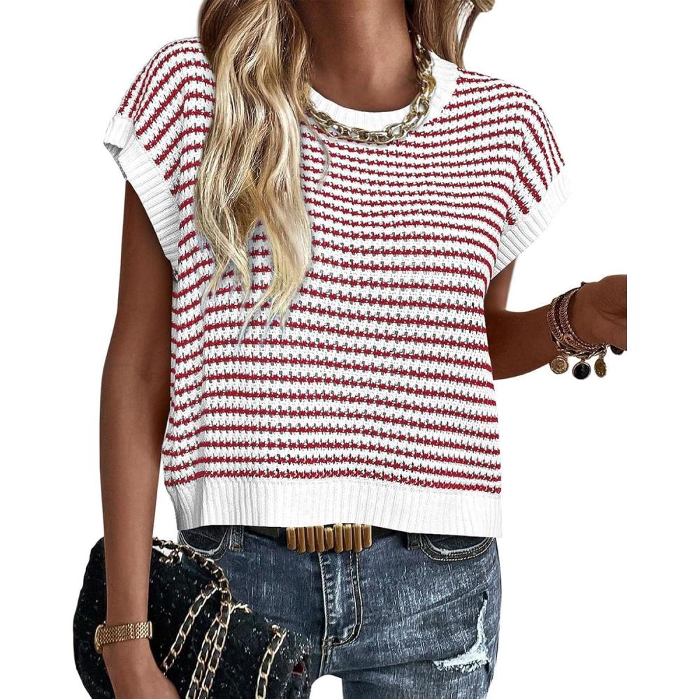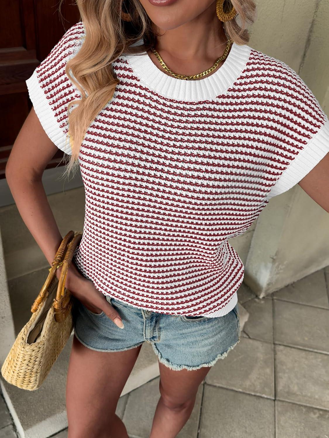 Be the first to review “ATHMILE Womens Short Sleeve Sweater Spring Summer Striped Round Neck Pullover Cap Sleeve Knit Cute Fashion Vest Tops(Red)” Cancel reply