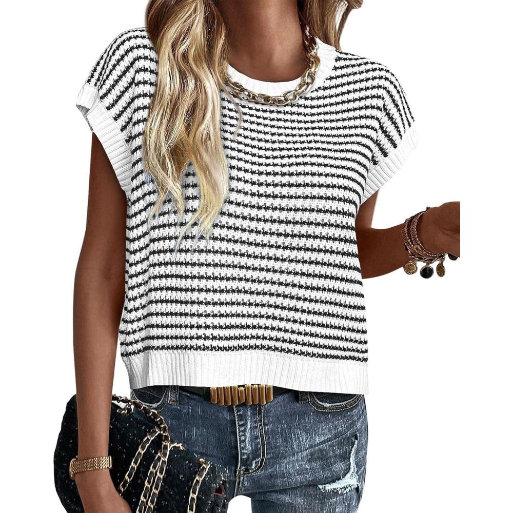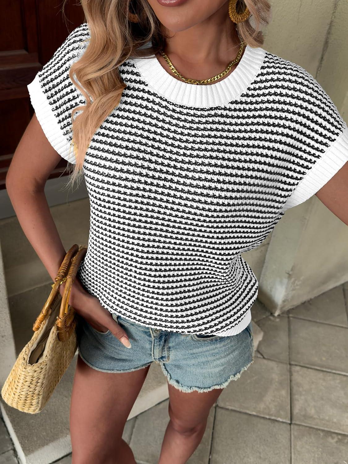 Be the first to review “ATHMILE Womens Short Sleeve Sweater Spring Summer Striped Round Neck Pullover Cap Sleeve Knit Cute Fashion Vest Tops(White)” Cancel reply