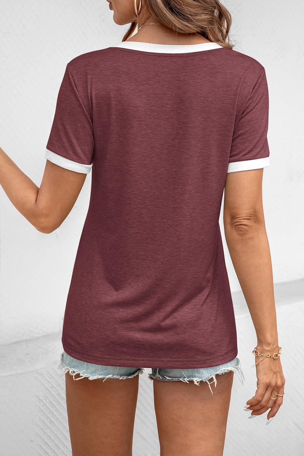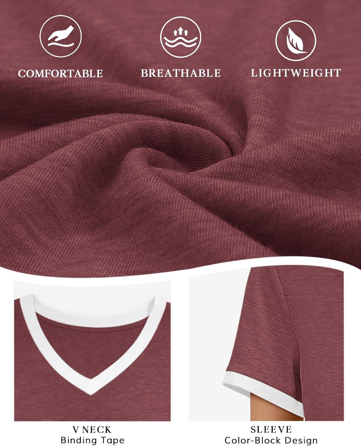 ATHMILE Womens Short Sleeve T-Shirts Spring Summer Tops Casual Soft Tunic V Neck Basic Workout Clothes Fashion Outfits 2026(Wine Red)
