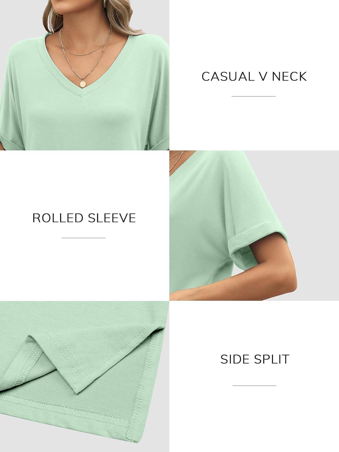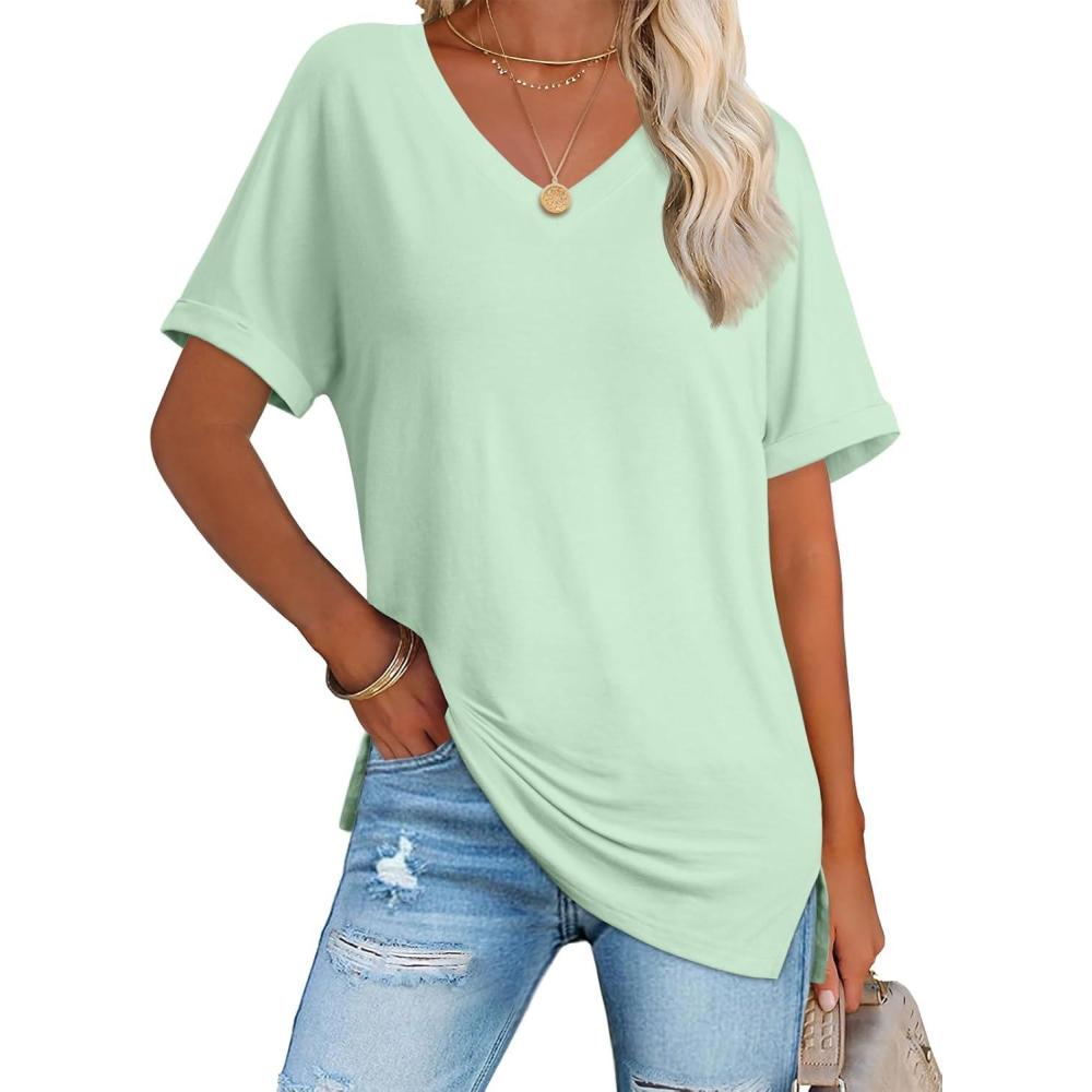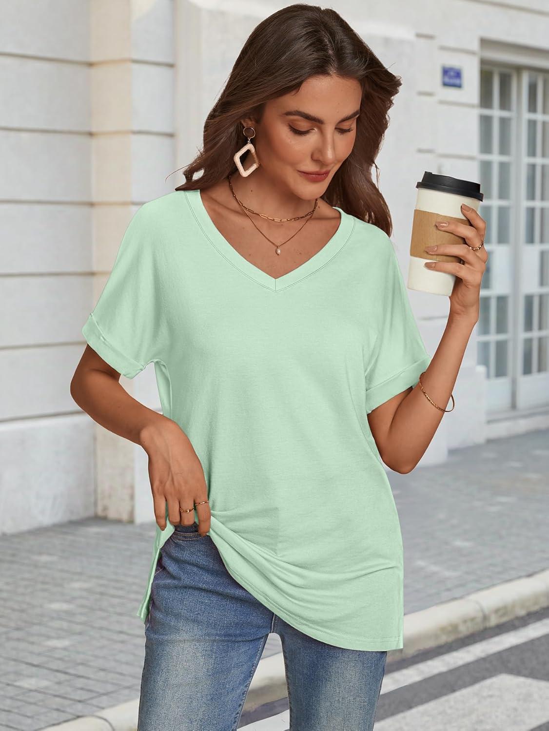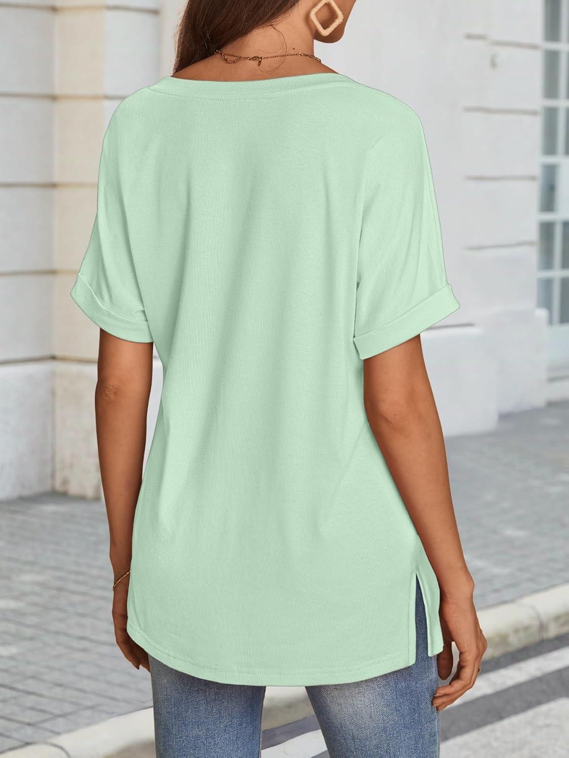 ATHMILE Womens Summer 2025 V Neck Casual Tunic Tops Spring Fashion Basic Trendy Outfits(Mintgreen)
