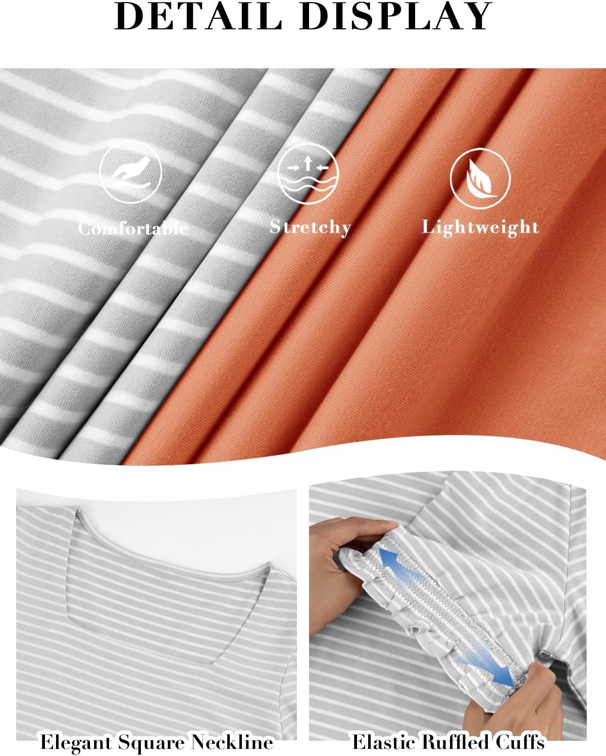 ATHMILE Womens Summer Tops Square Neck Dressy Casual Ruffle Trim Sleeve Cute T Shirts Trendy Clothes(Greystripe)