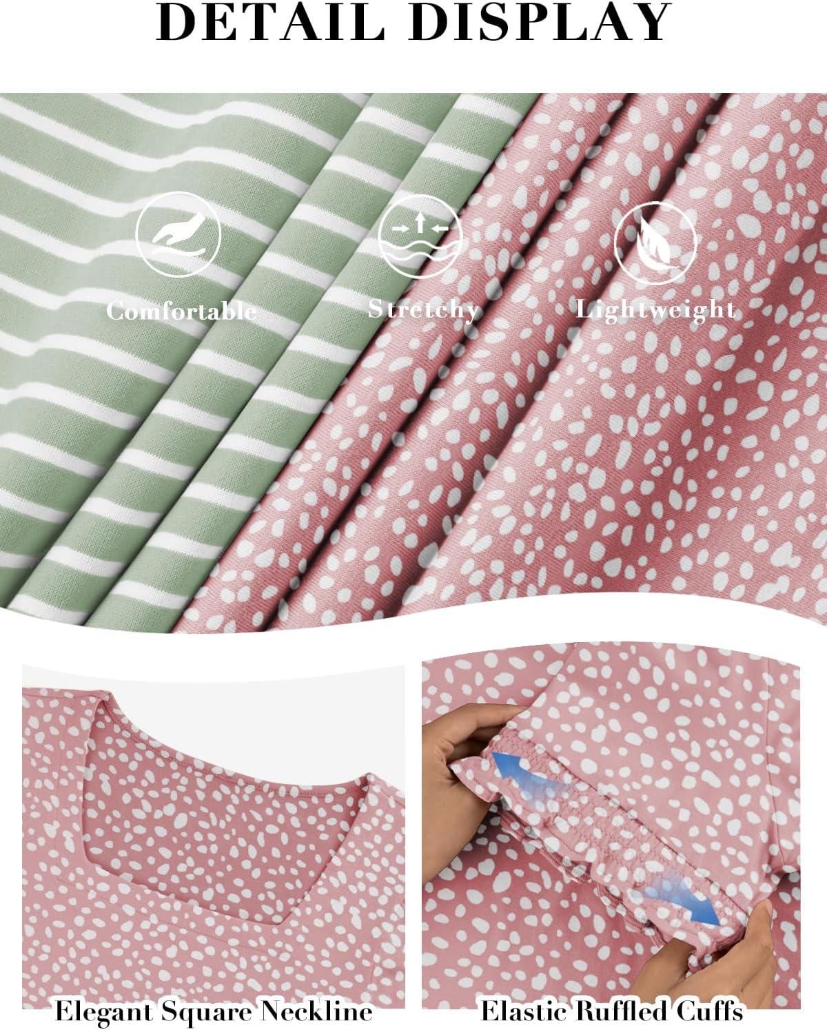 ATHMILE Womens Summer Tops Square Neck Dressy Casual Ruffle Trim Sleeve Cute T Shirts Trendy Clothes(Pink Dot)