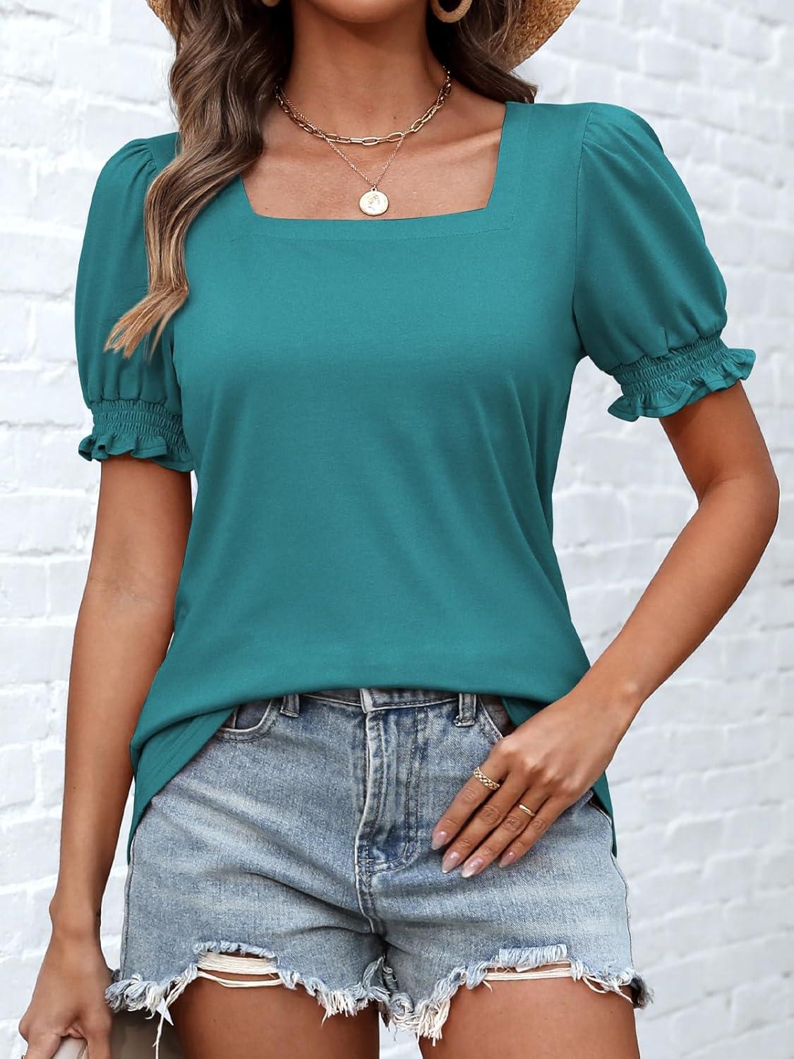 Score big savings on ATHMILE Womens Summer Tops Square Neck Dressy Casual Ruffle Trim Sleeve Cute T Shirts Trendy Clothes(Teal) during our back-to-school sale. Limited quantities available.