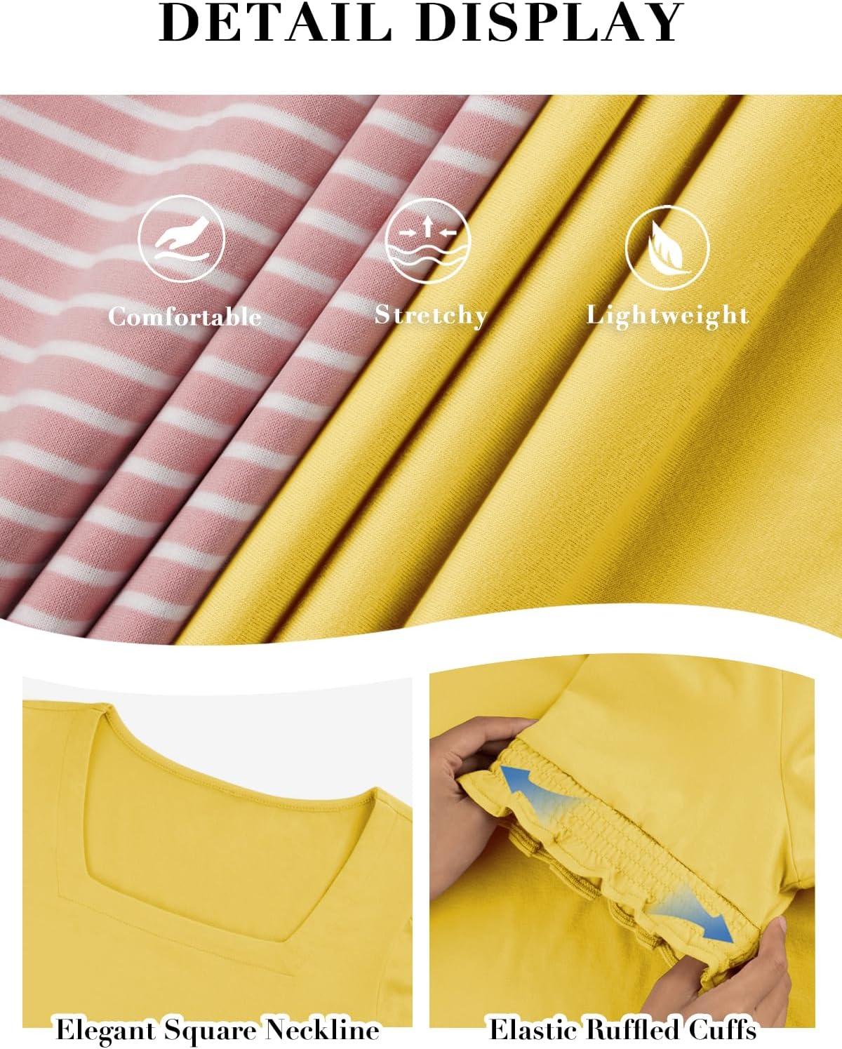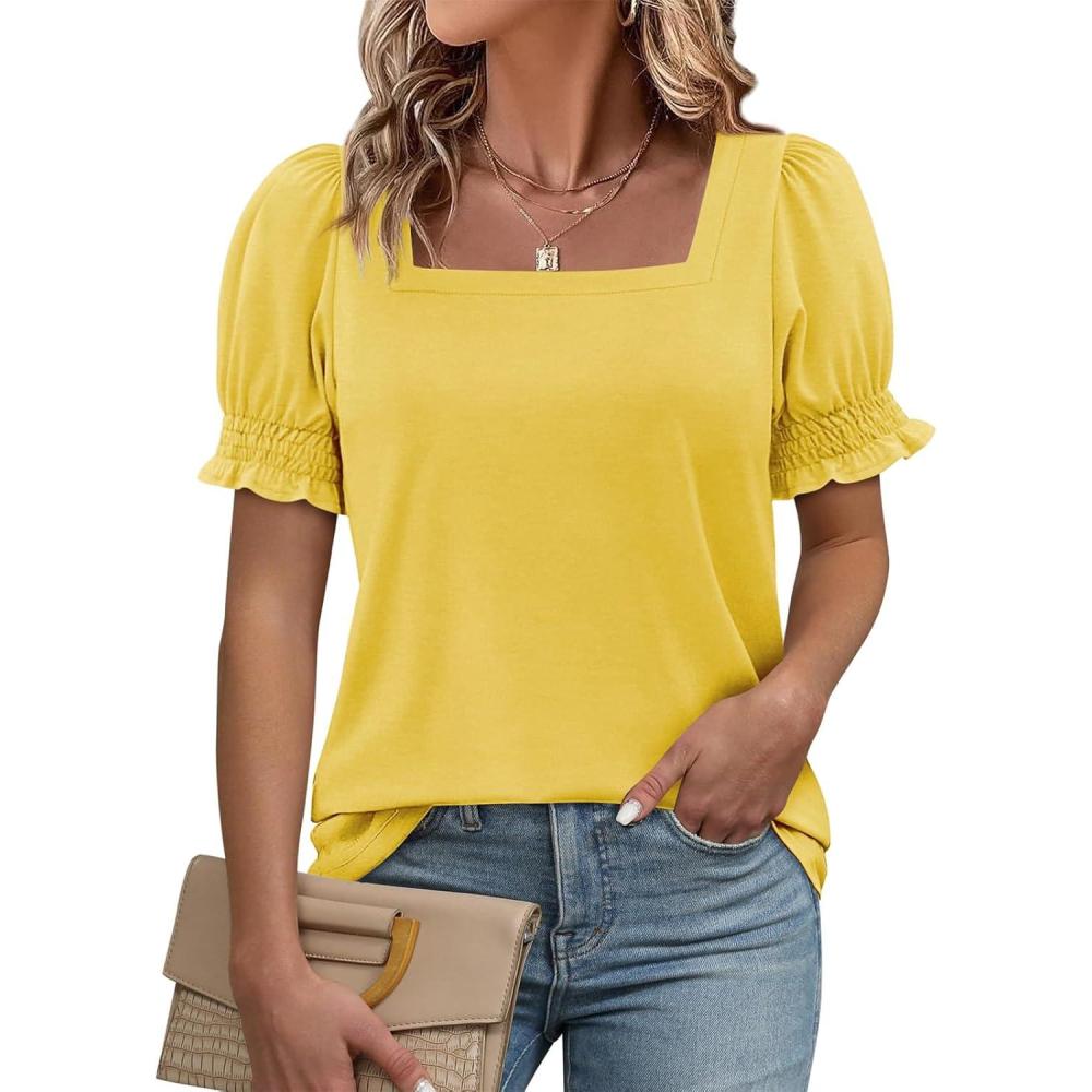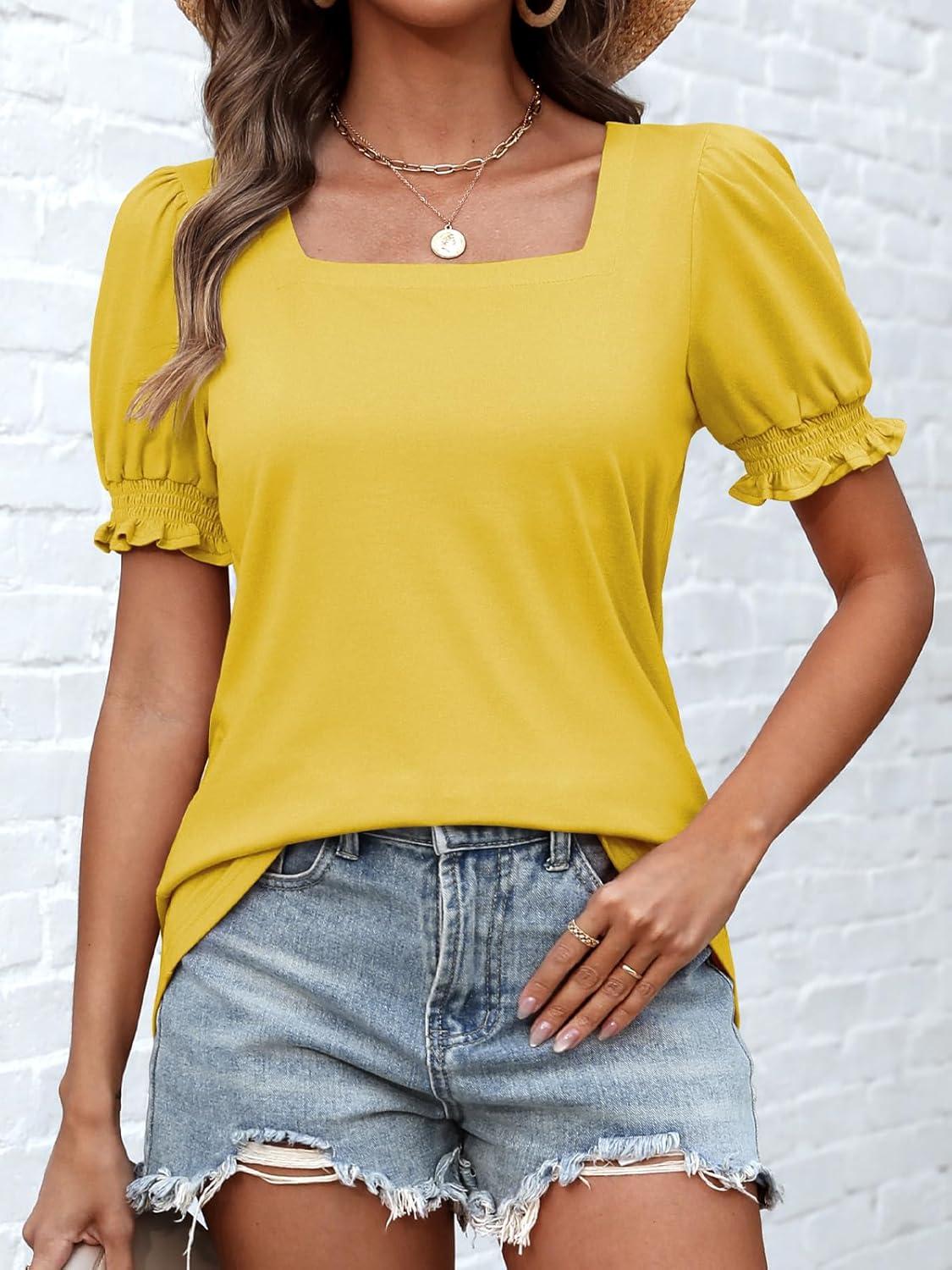ATHMILE Womens Summer Tops Square Neck Dressy Casual Ruffle Trim Sleeve Cute T Shirts Trendy Clothes(Yellow)