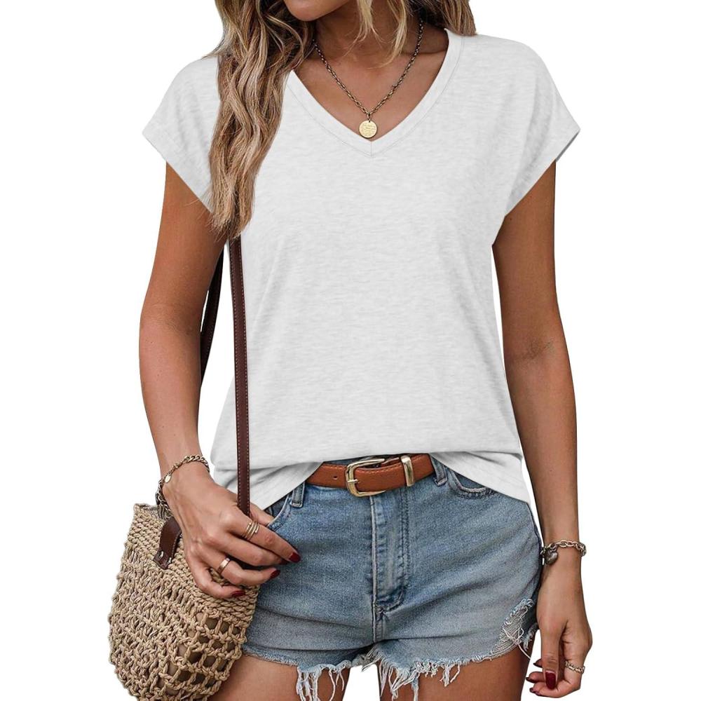 Score big on ATHMILE Womens Summer Tops V Neck Cap Sleeve Tshirts Casual Cute T Shirts Fashion Clothes Vintage Basics Tee(White) and accessories during our BOGO sale. Buy one, get one 50% off!