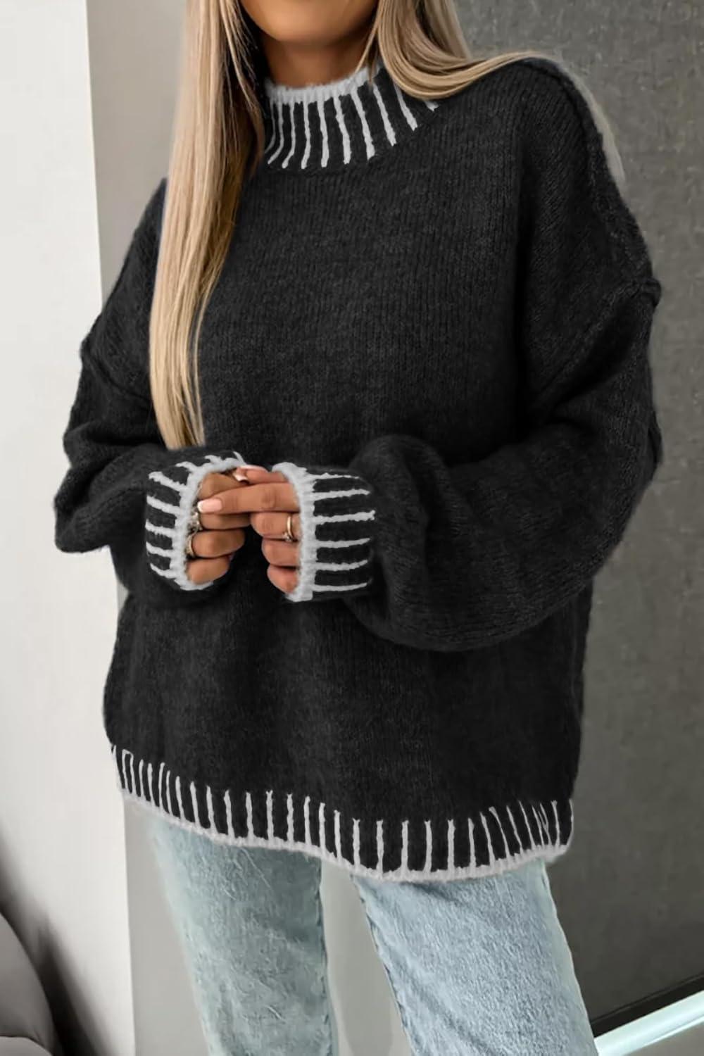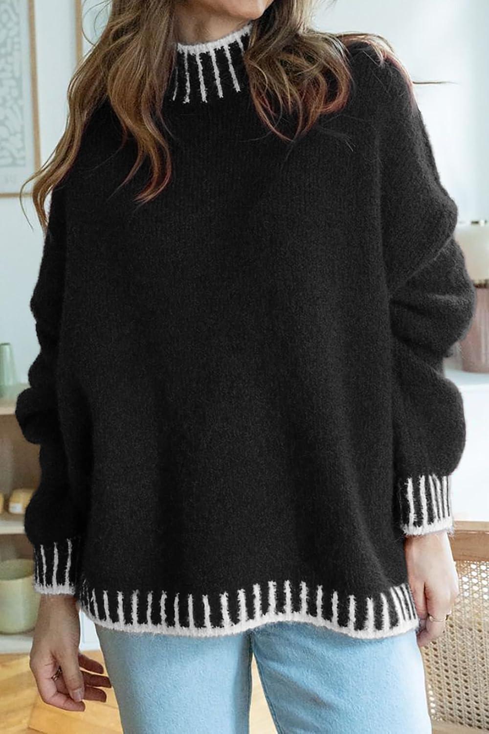 ATHMILE Womens Sweaters Fall Oversized Pullover Long Sleeve Mock Neck Chunky Knit Jumper Tops Winter Fashion Clothing 2025(Black)