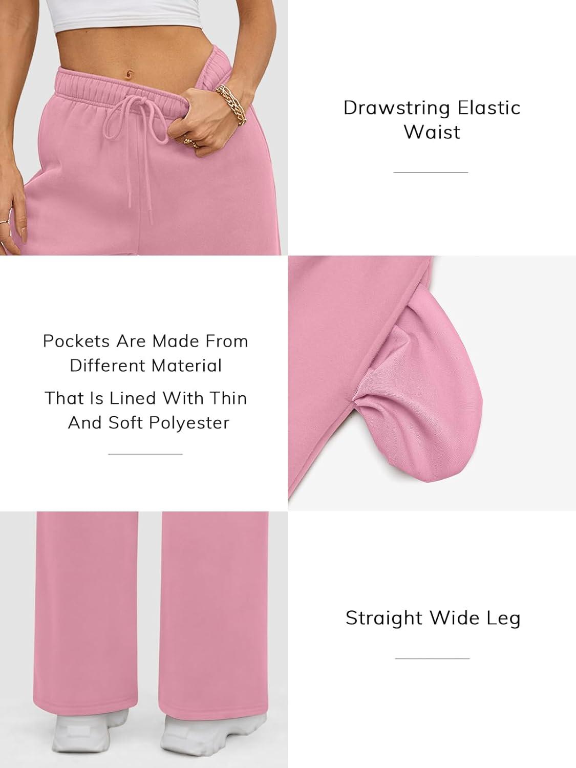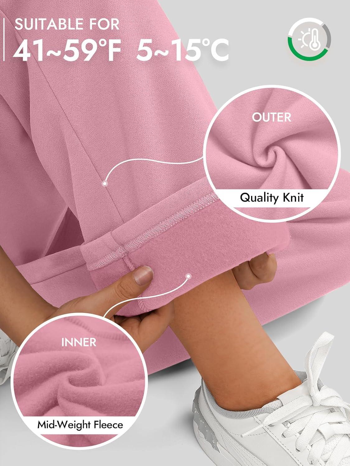 ATHMILE Womens Sweatpants 2025 Fall Baggy Wide Leg Sweatpant Fleece Lined Straight Leg Sweat Pants(Pink)