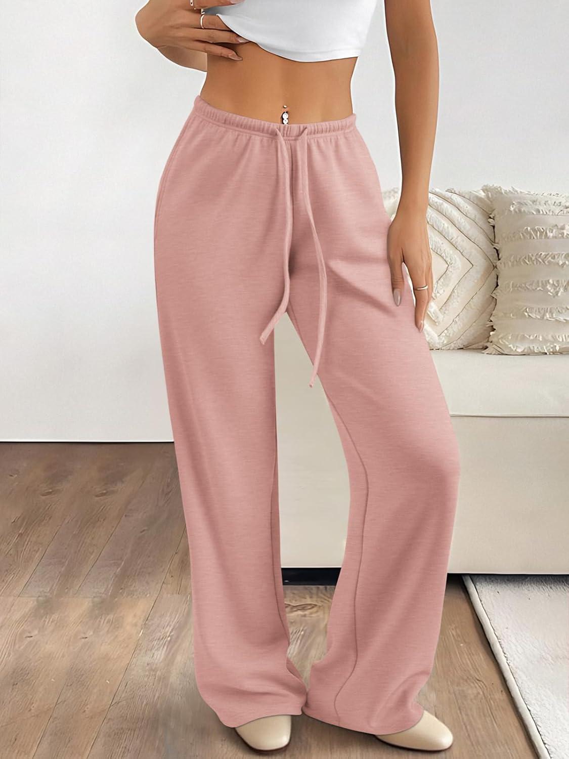 ATHMILE Womens Sweatpants Wide Leg Barrel Pants Baggy Joggers Low Waist Fall Fashion Winter Clothing Pockets 2025(Pink)
