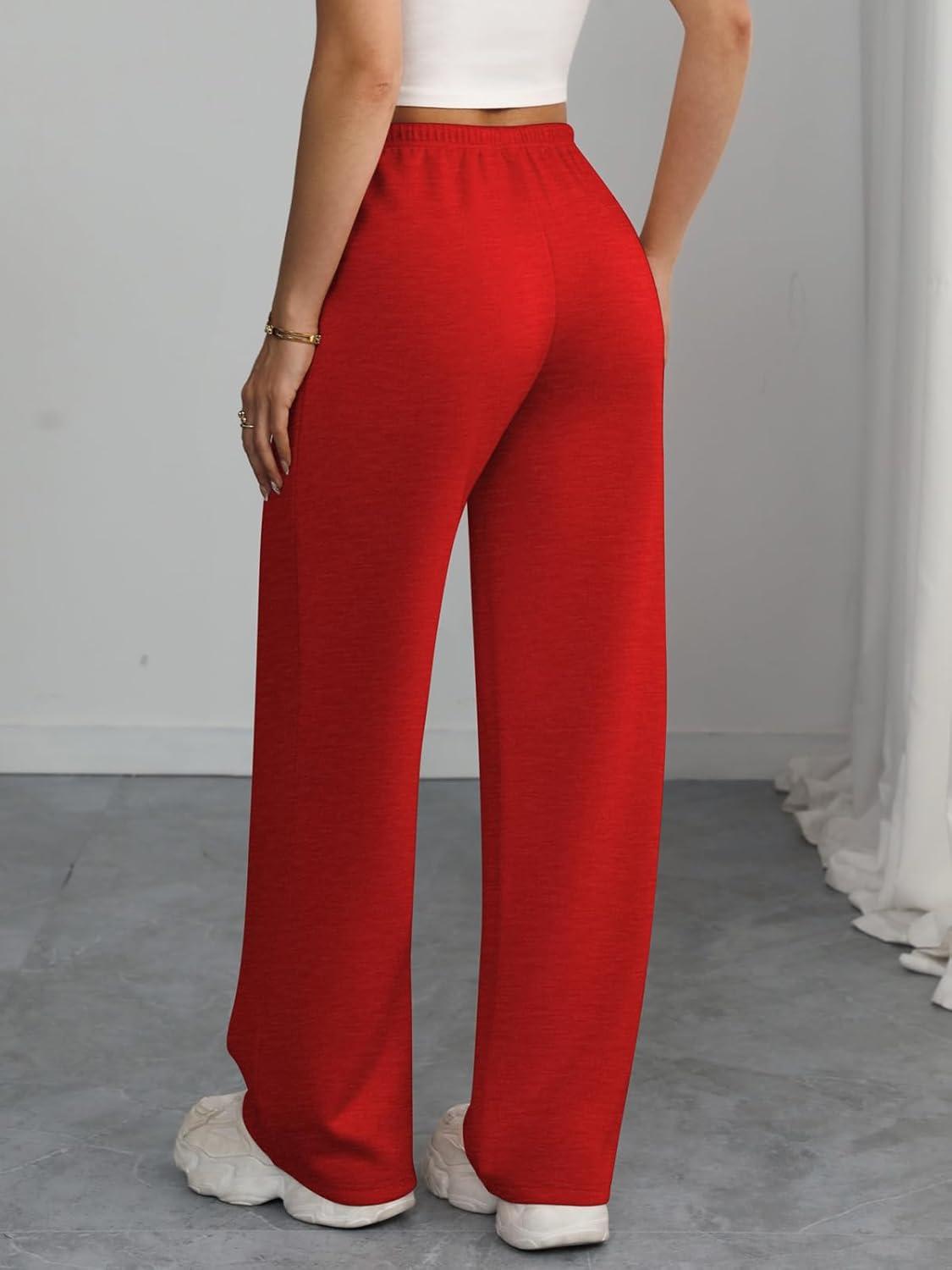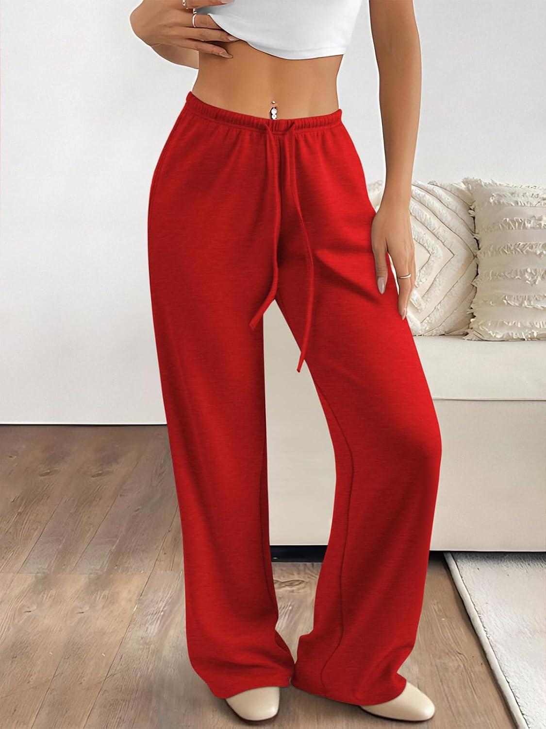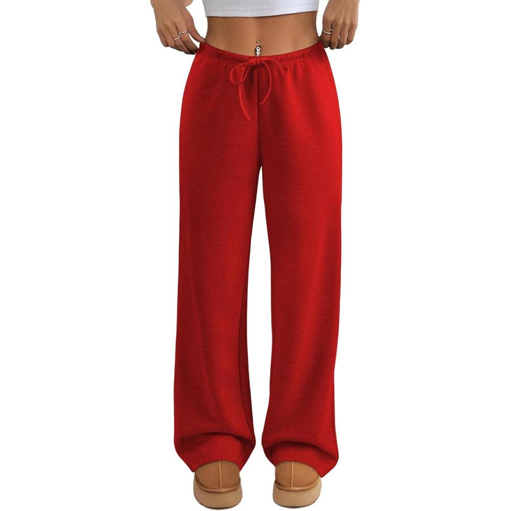 ATHMILE Womens Sweatpants Wide Leg Barrel Pants Baggy Joggers Low Waist Fall Fashion Winter Clothing Pockets 2025(Red)