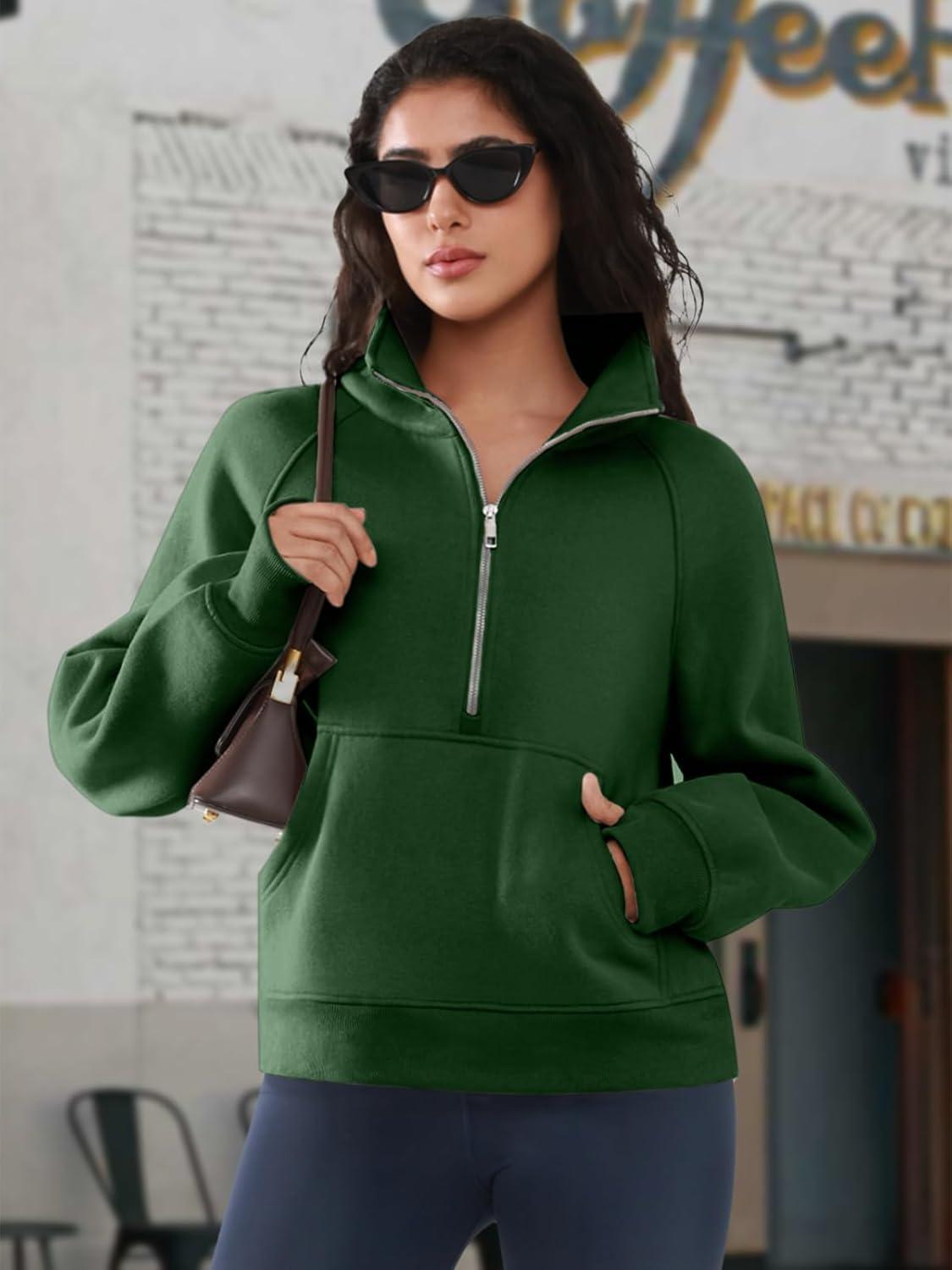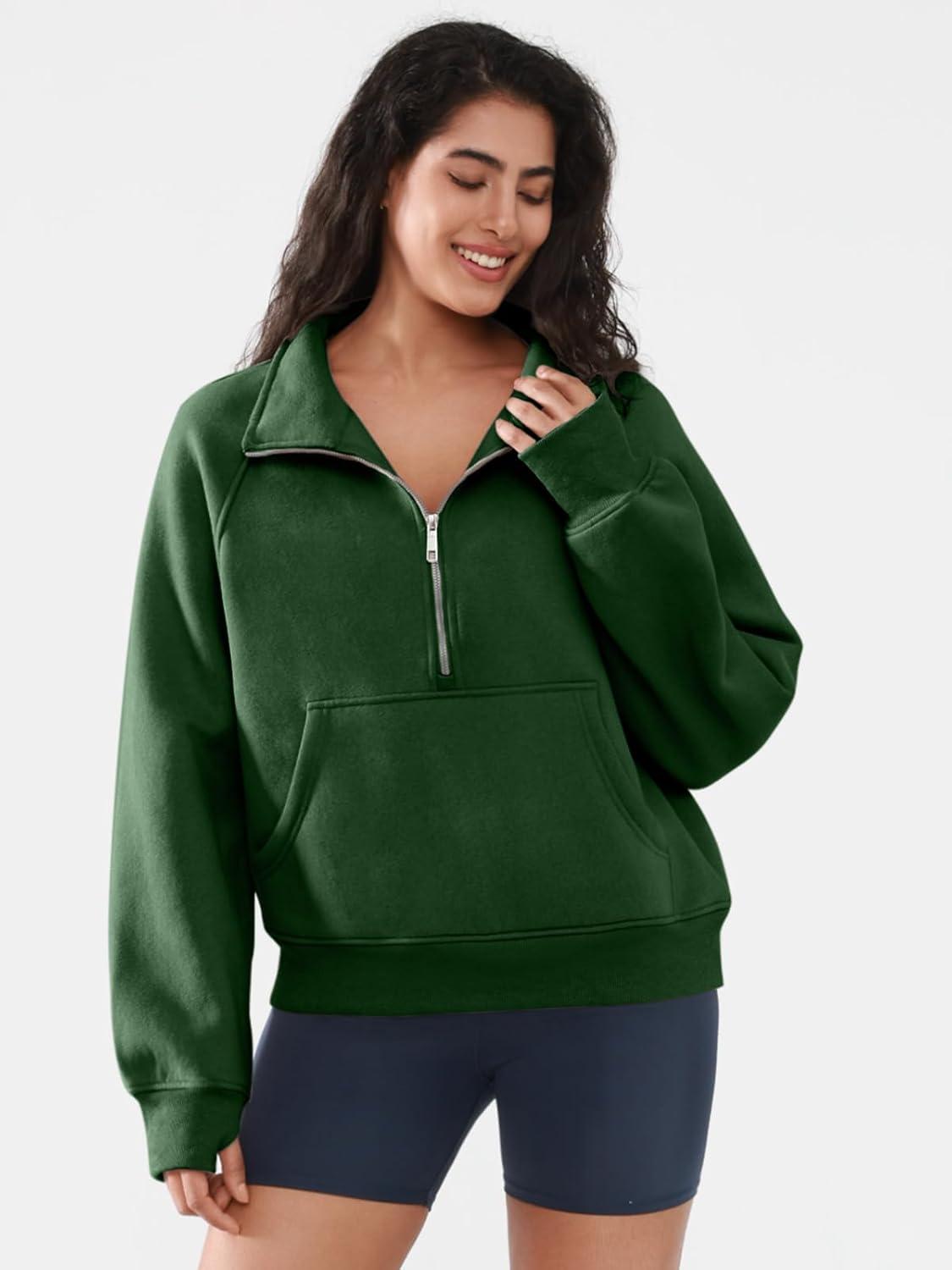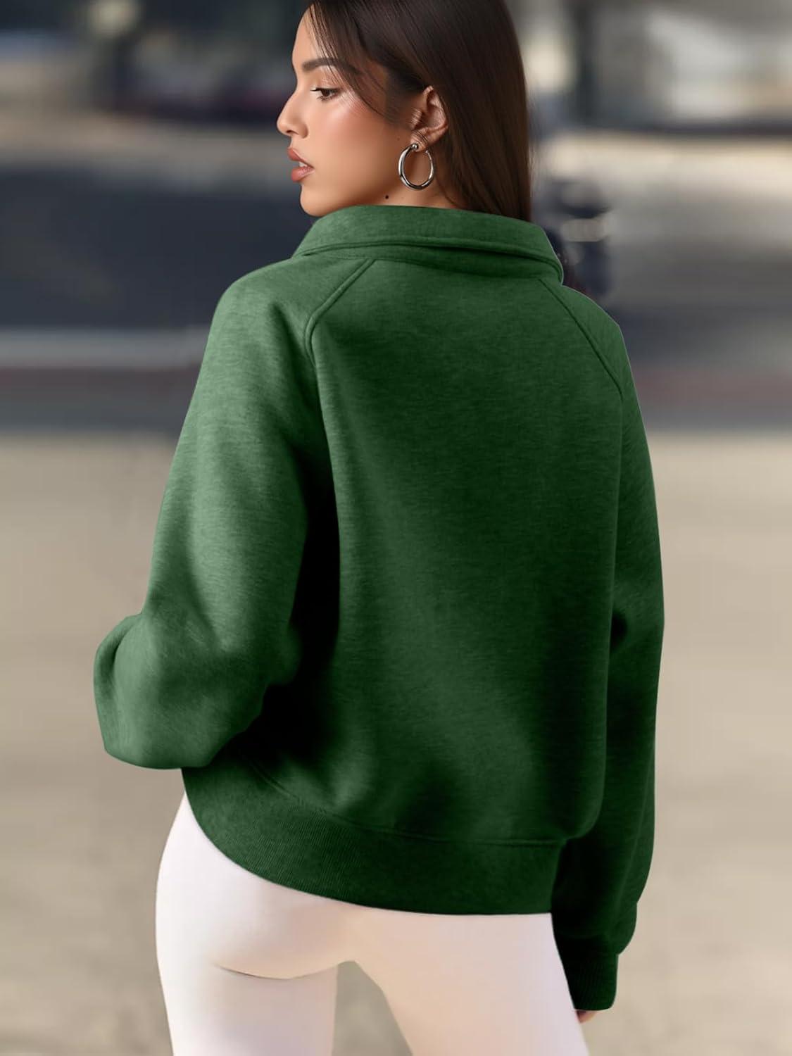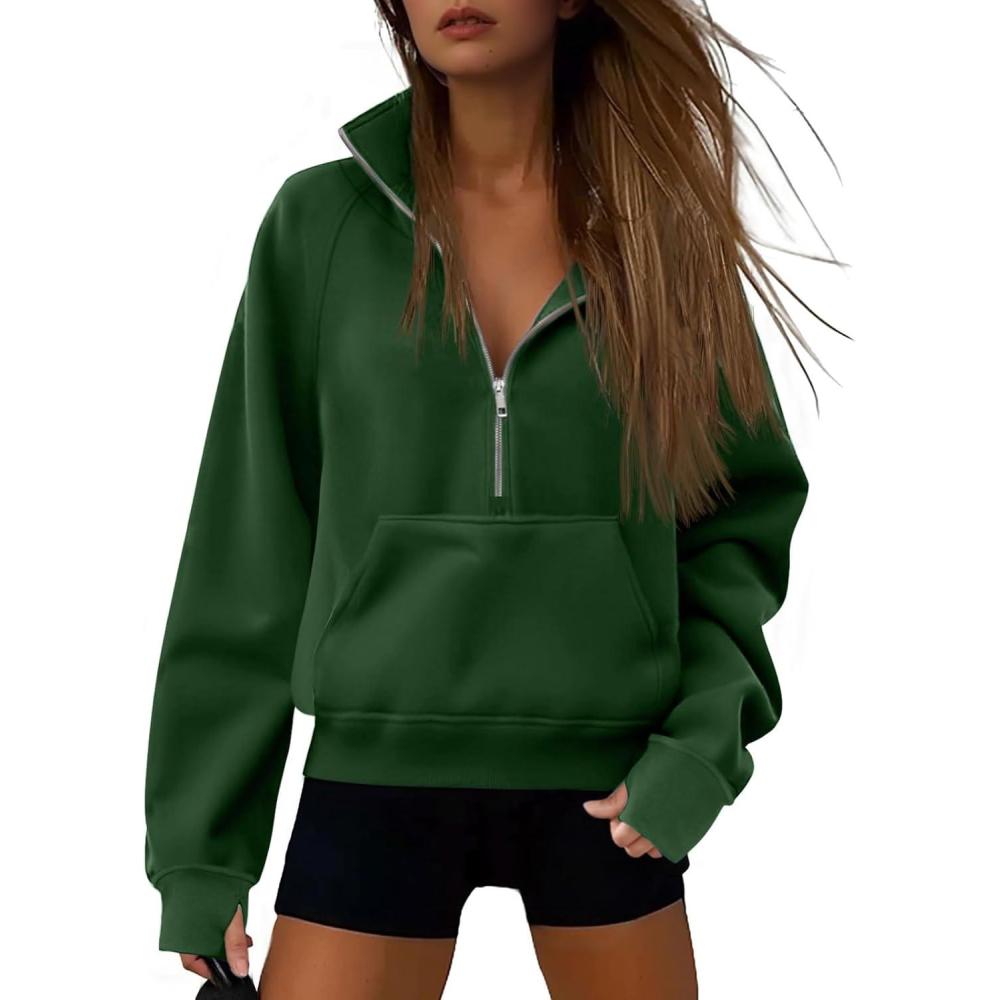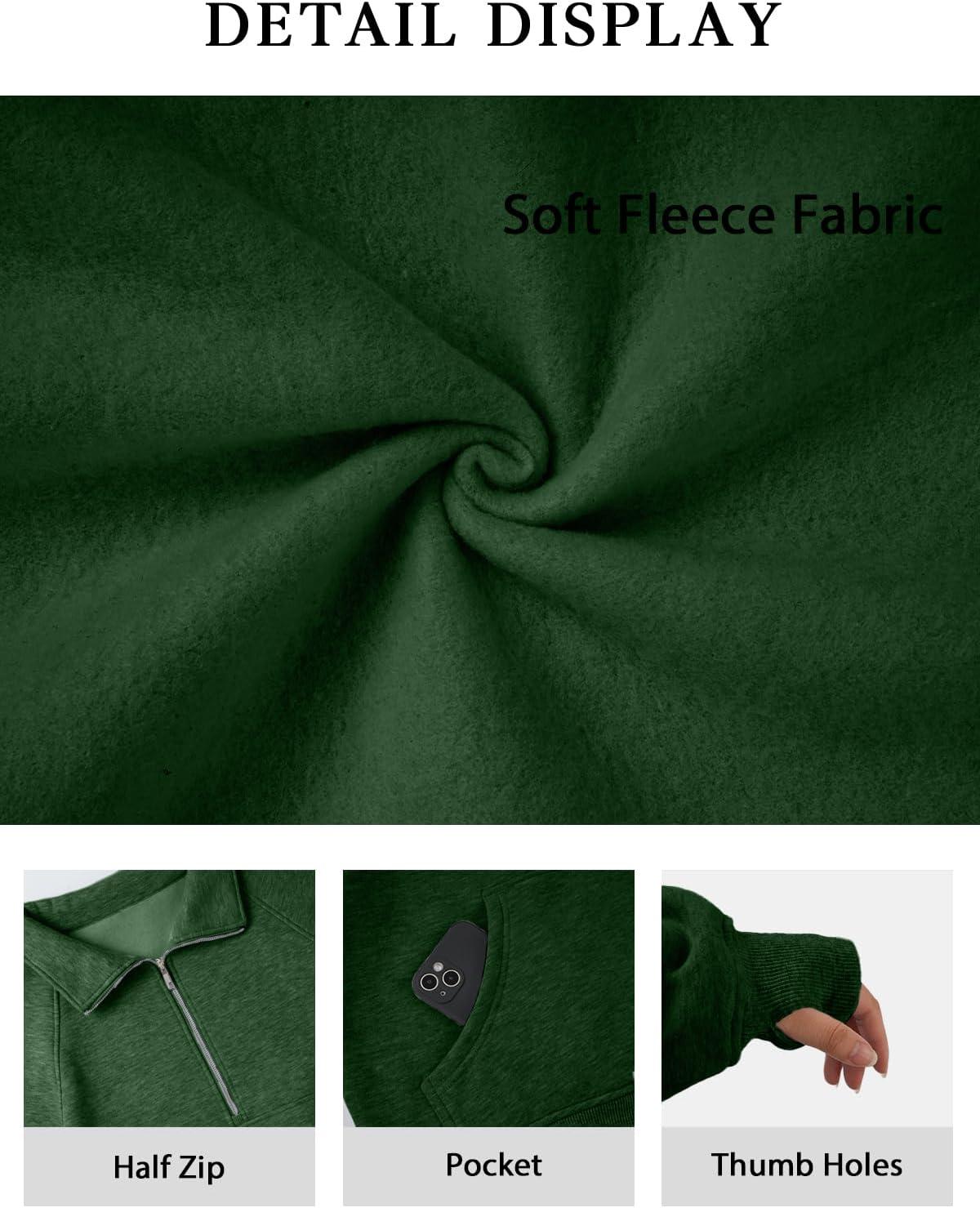 ATHMILE Womens Sweatshirts Half Zip Cropped Pullover Fleece Quarter Zipper Hoodies 2025 Fall Fashion Outfits Clothes(Darkgreen)