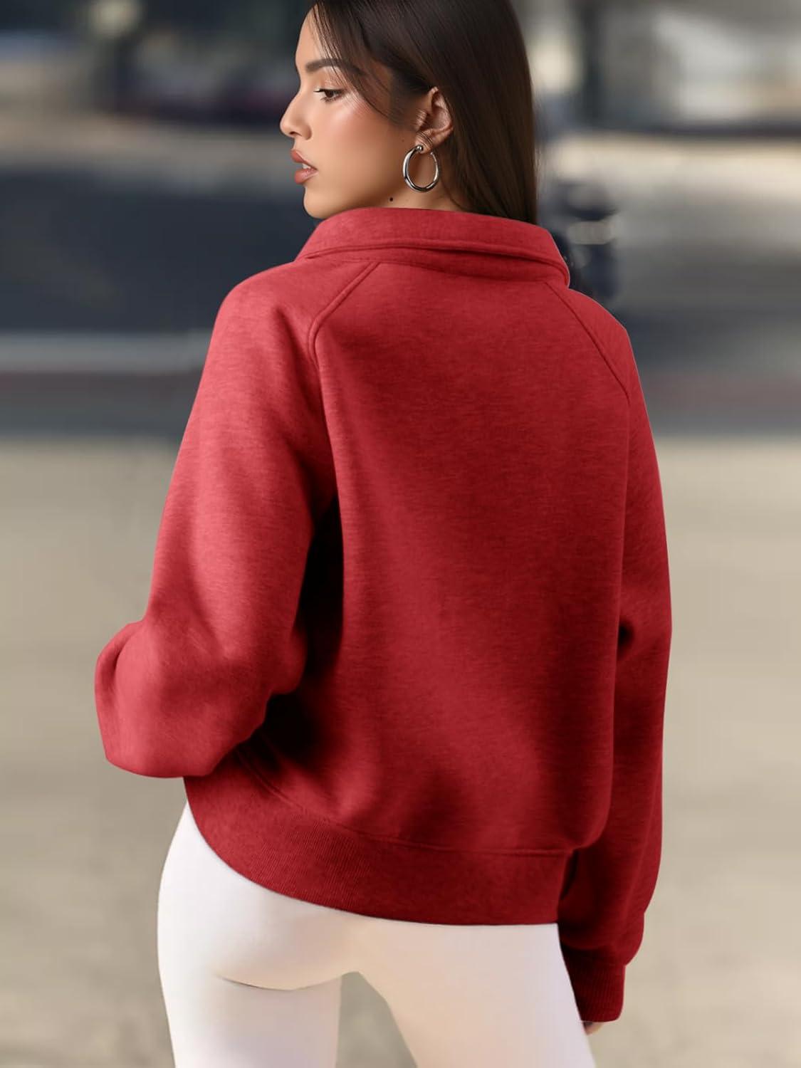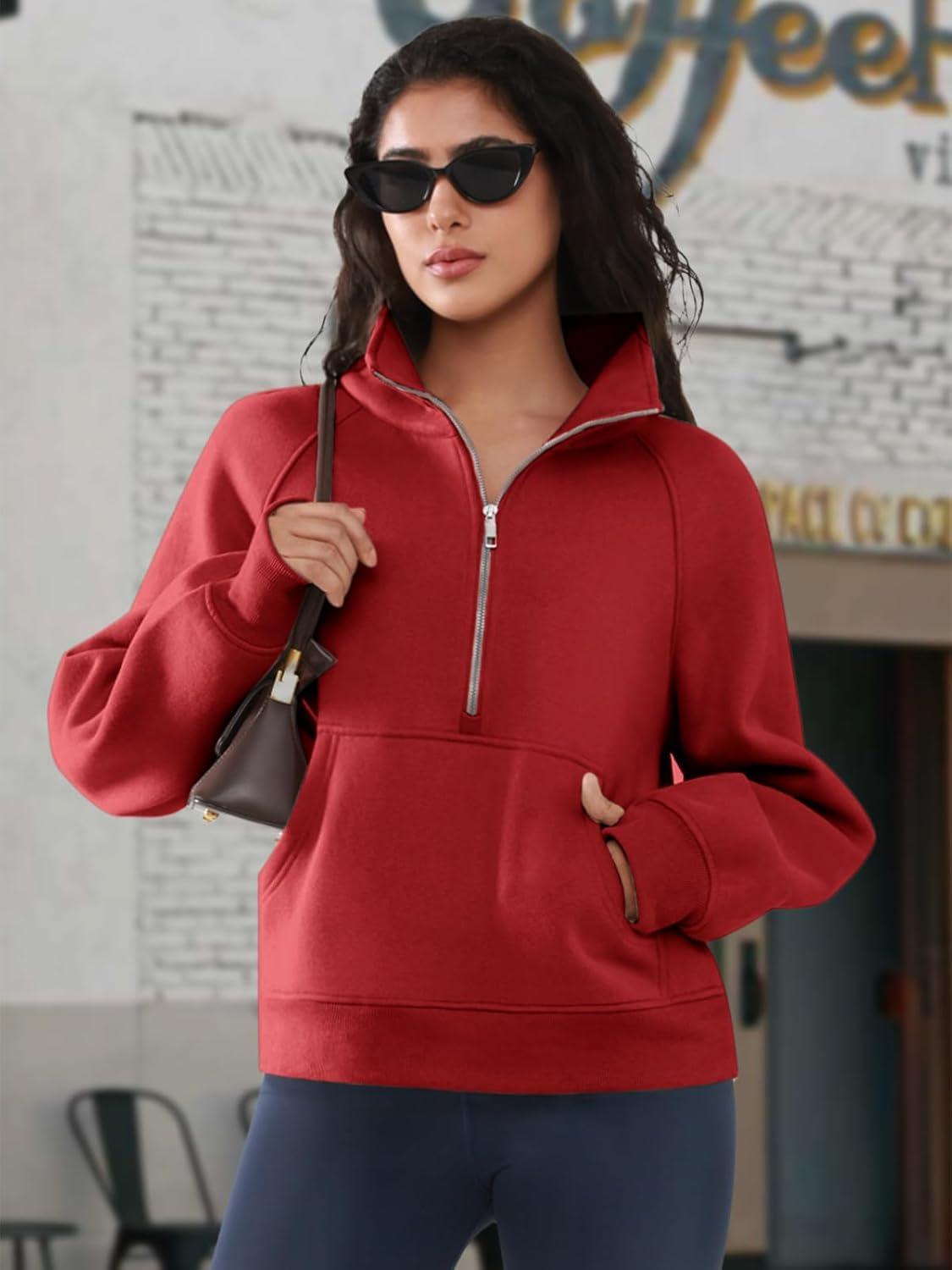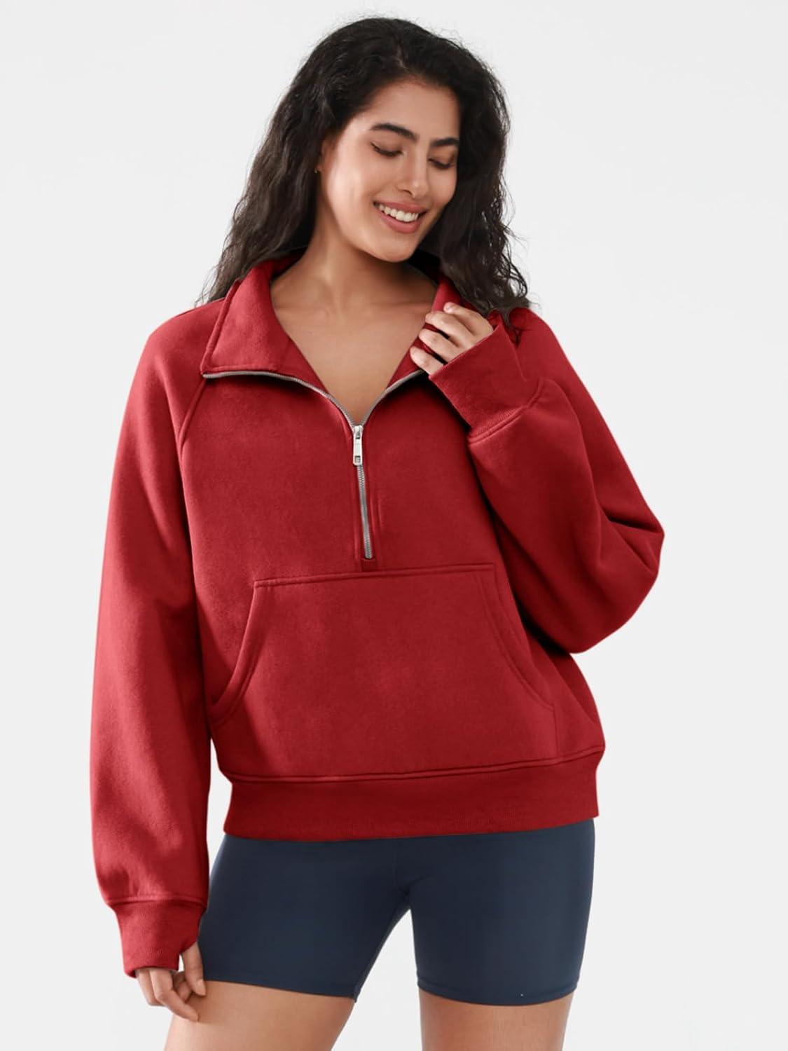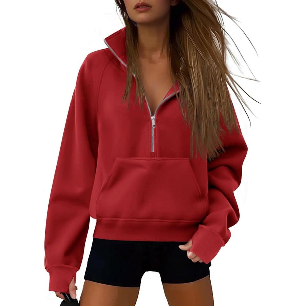 imageATHMILE Womens Sweatshirts Half Zip Cropped Pullover Fleece Quarter Zipper Hoodies 2025 Fall Fashion Outfits ClothesRed
