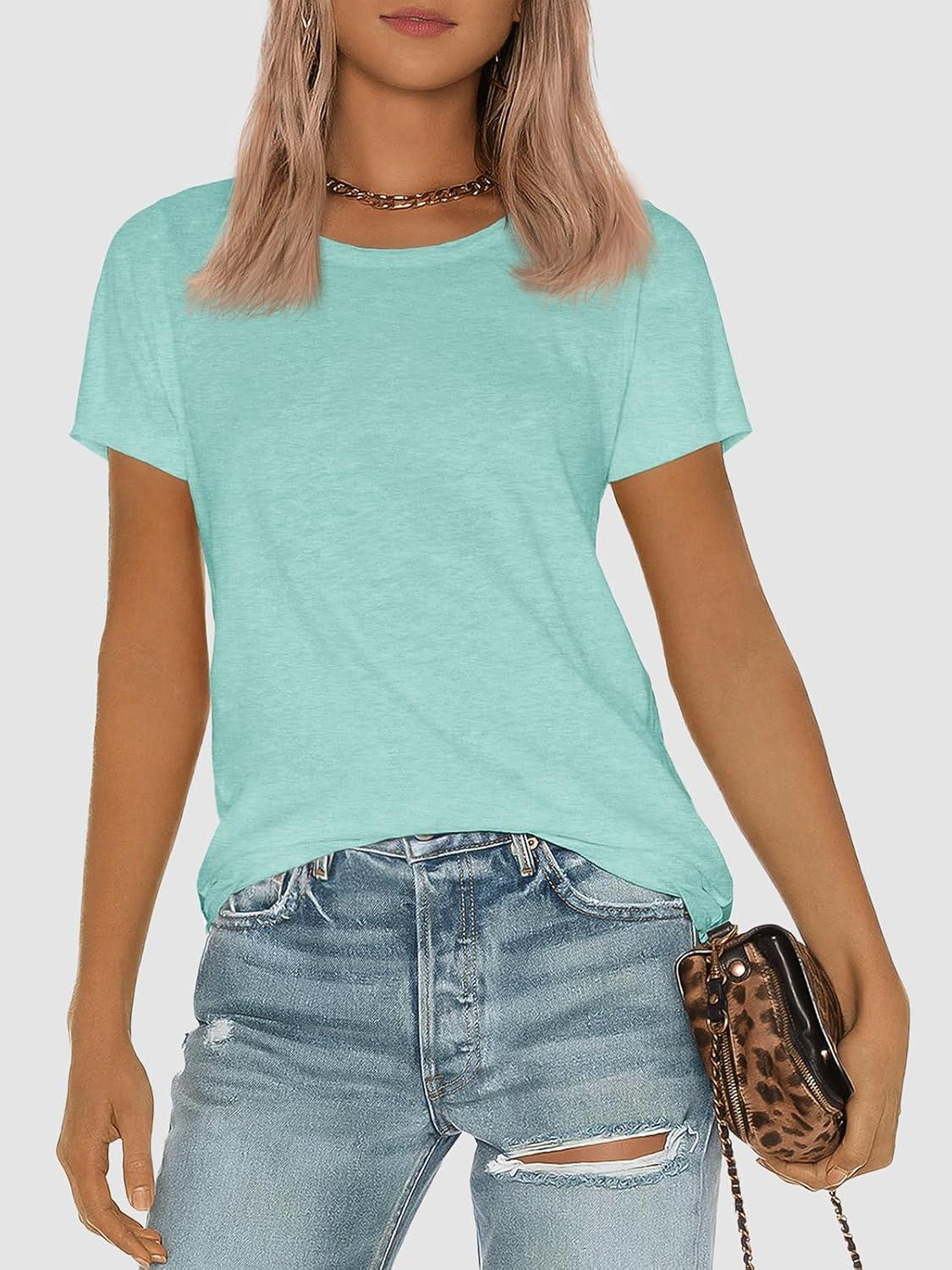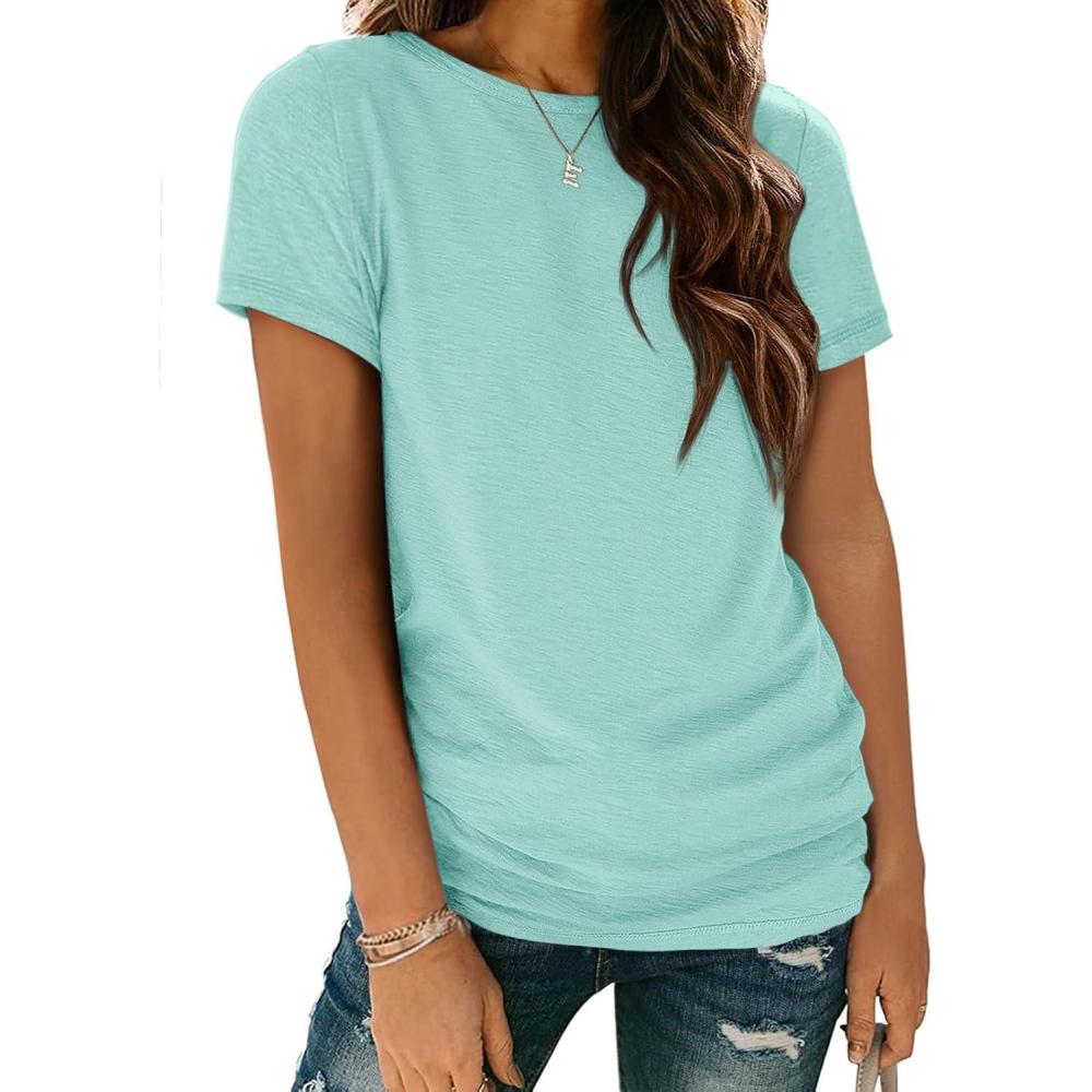 ATHMILE Womens T Shirt Summer Tops Short Sleeve Fashion School Teachers Clothes 2025 Spring Beach Vacation Trendy(Aqua)