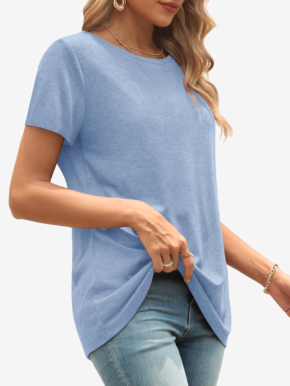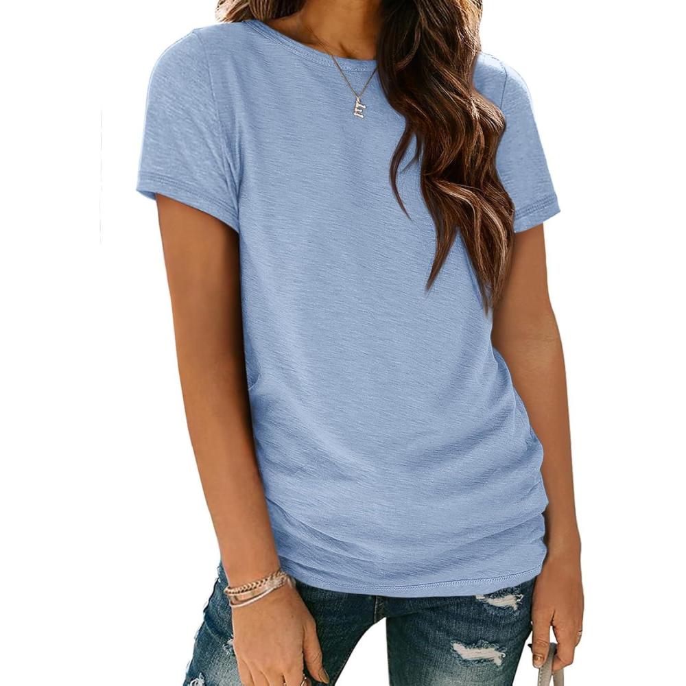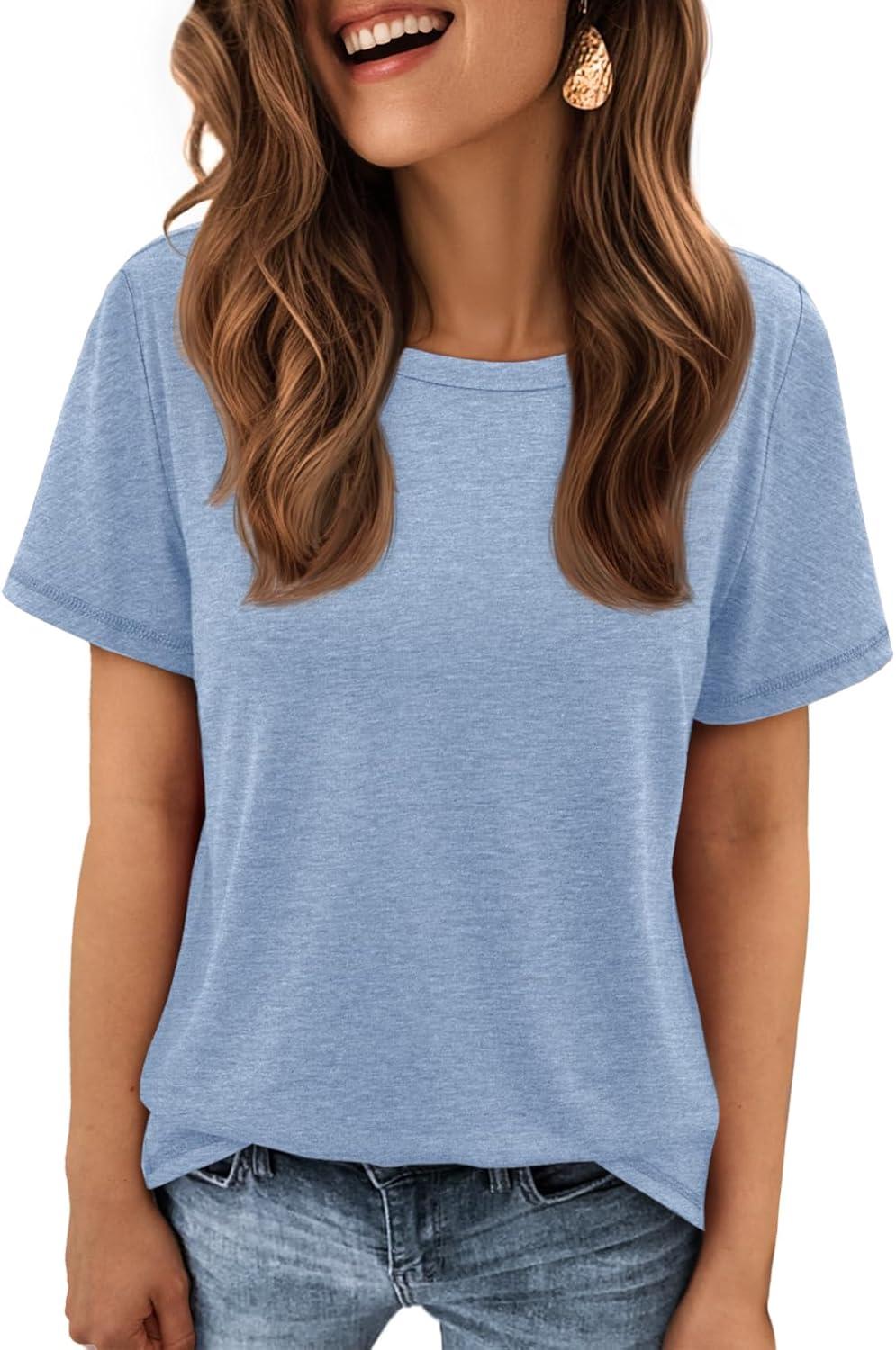 ATHMILE Womens T Shirt Summer Tops Short Sleeve Fashion School Teachers Clothes 2025 Spring Beach Vacation Trendy(Ice Blue)