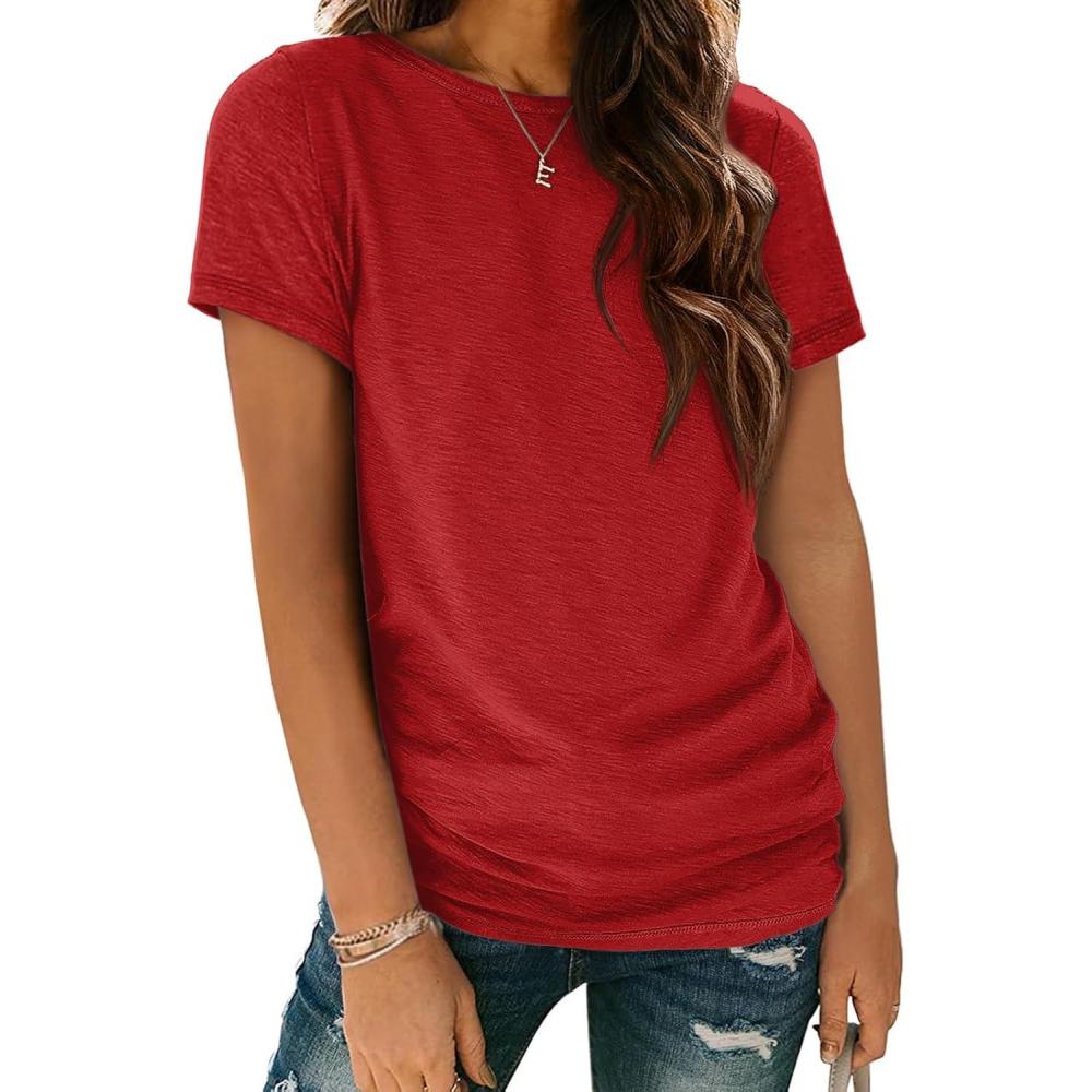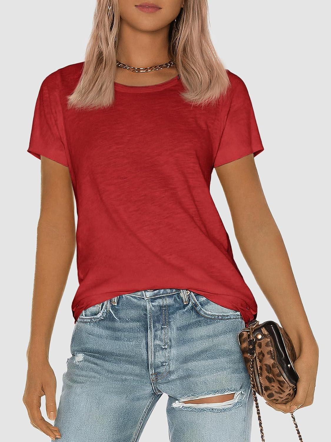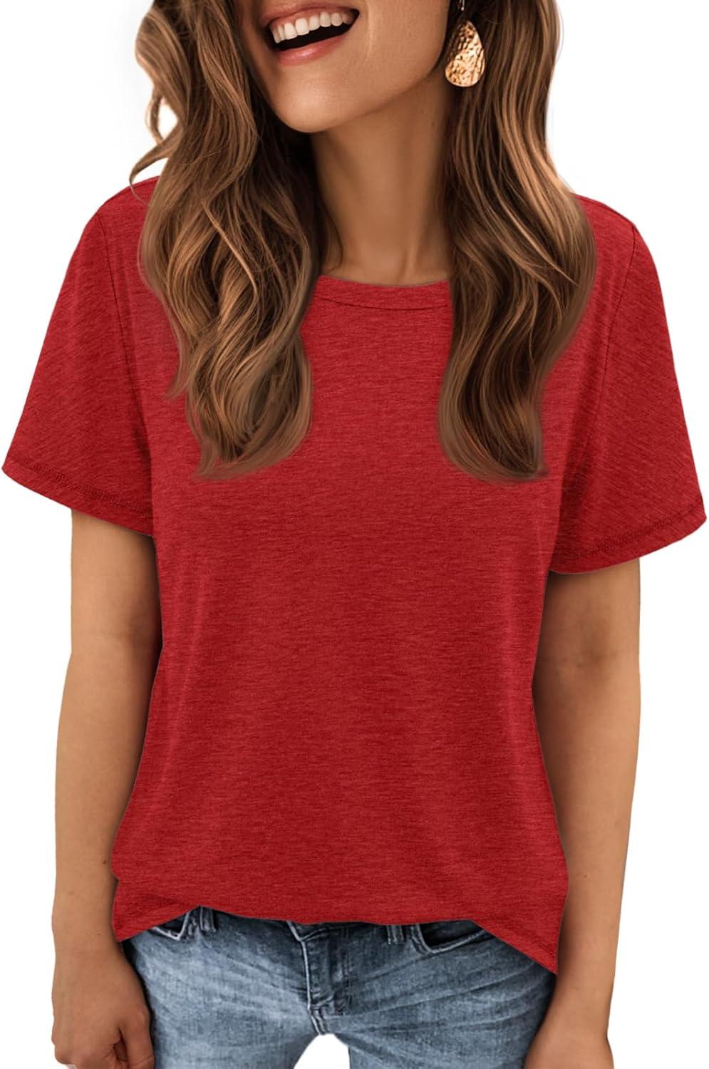 ATHMILE Womens T Shirt Summer Tops Short Sleeve Fashion School Teachers Clothes 2025 Spring Beach Vacation Trendy(Red)