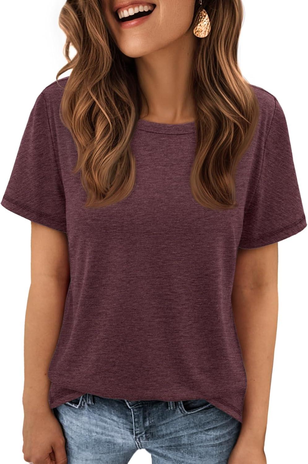 ATHMILE Womens T Shirt Summer Tops Short Sleeve Fashion School Teachers Clothes 2025 Spring Beach Vacation Trendy(Wine Red)