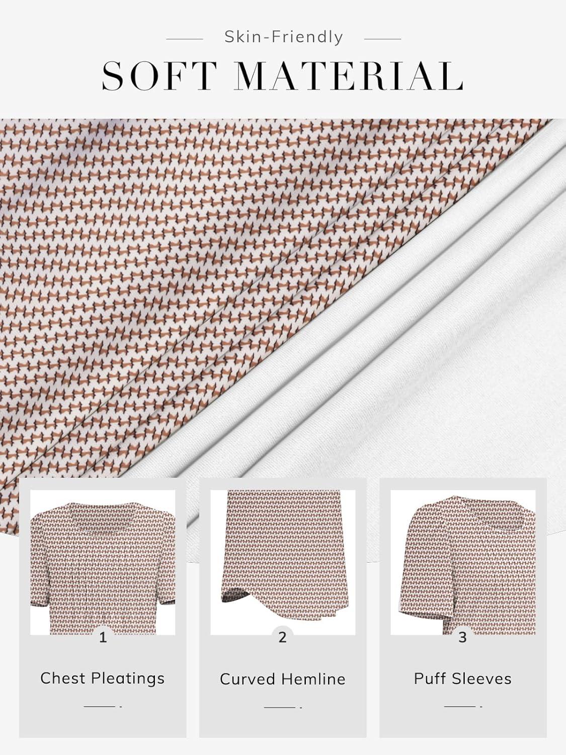 ATHMILE Womens T Shirts Short Sleeve Summer Tops Pleated Dressy Casual Blouses Spring Clothes Beach Vacation 2025(Brown Stripes)
