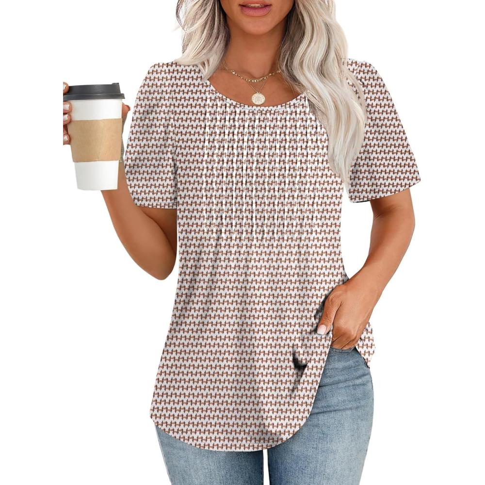 ATHMILE Womens T Shirts Short Sleeve Summer Tops Pleated Dressy Casual Blouses Spring Clothes Beach Vacation 2025(Bohemian Color)