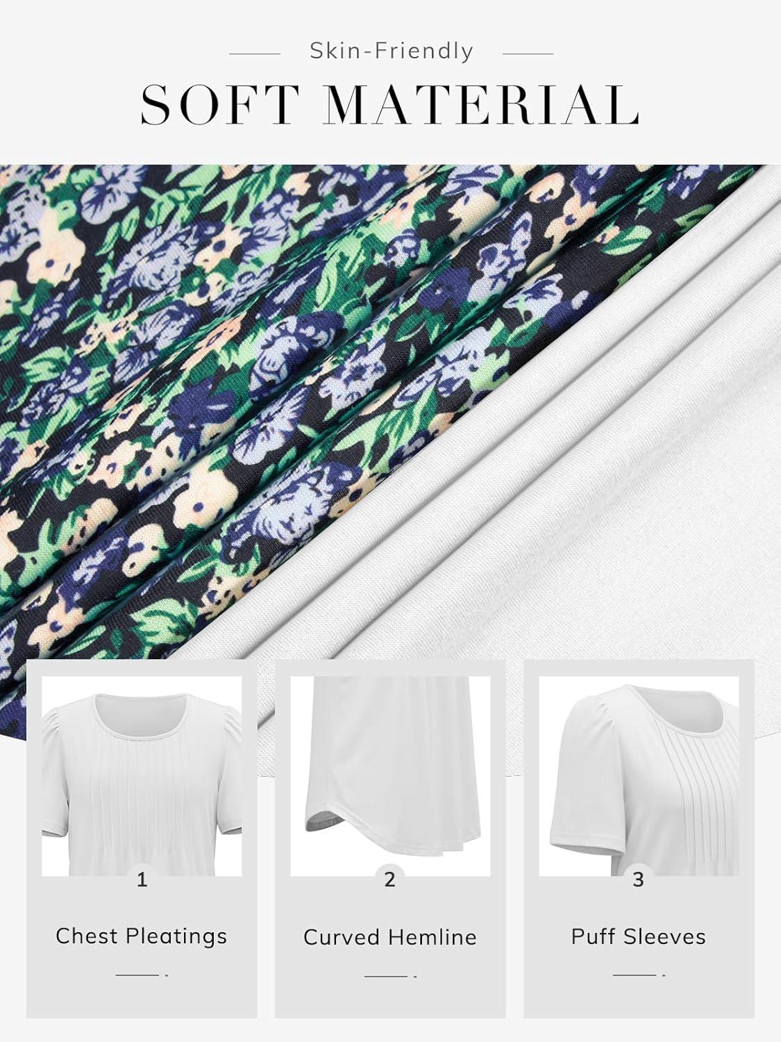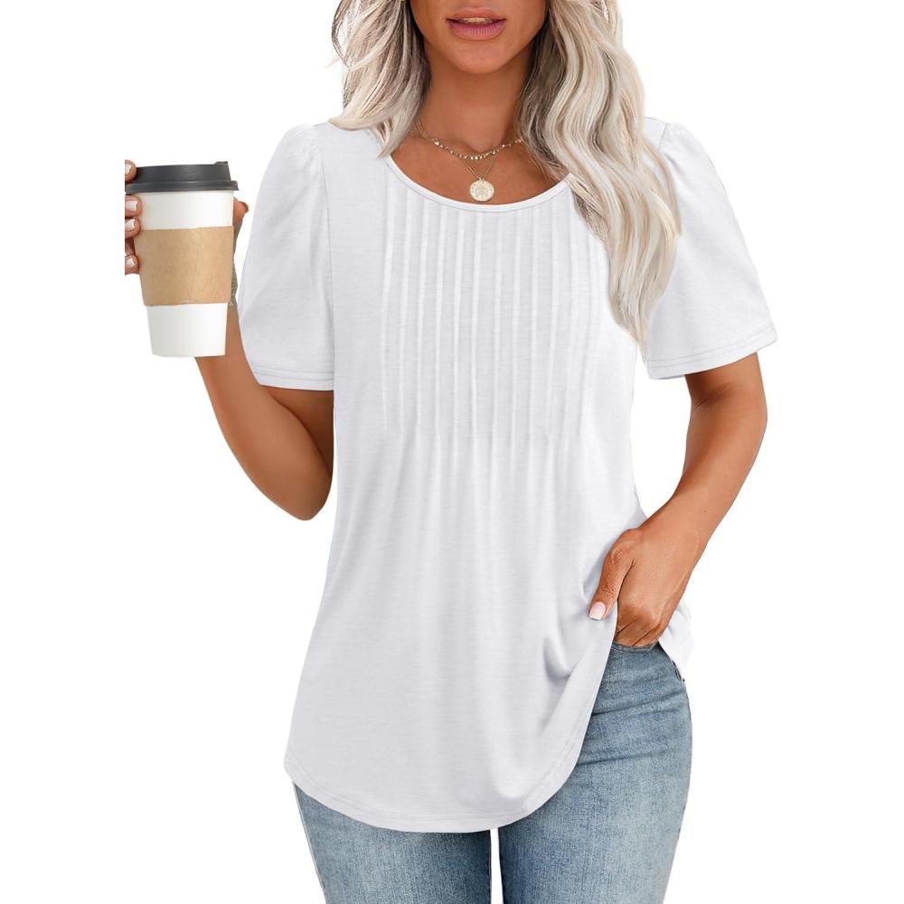 ATHMILE Womens T Shirts Short Sleeve Summer Tops Pleated Dressy Casual Blouses Spring Clothes Beach Vacation 2025(White)